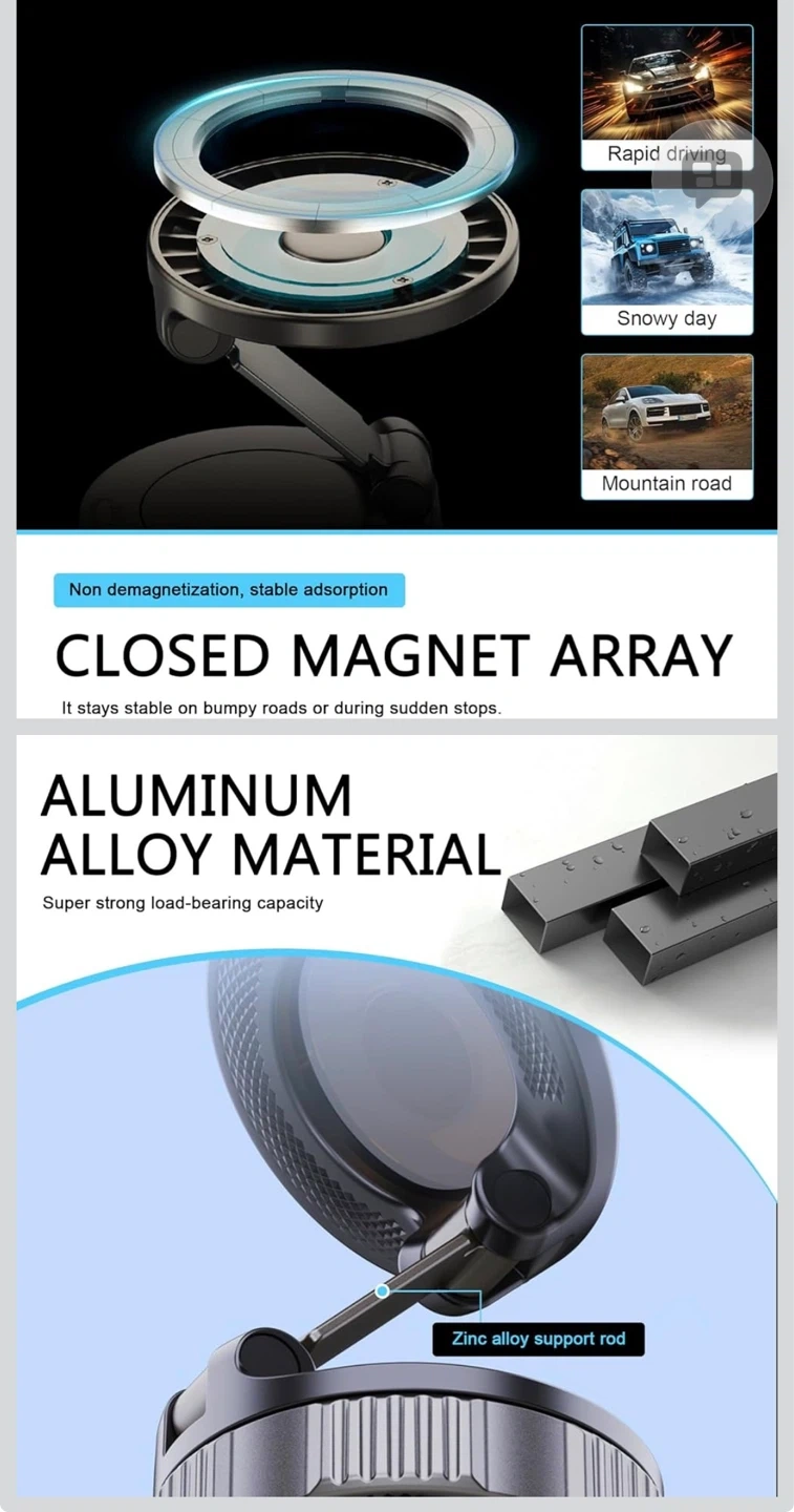 Upgraded Magnetic Phone Holder Car Mount,Foldable Car Phone Holder Mount with Vacuum Adsorption Design & 360 Degree Rotating Base,Practical Suction Cup Phones Holders