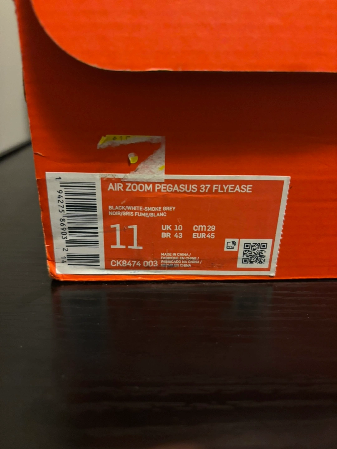 Men's Nike Zoom Pegasus 37 running shoes. Size 11. Black with white accents. Good condition. Includes original box.