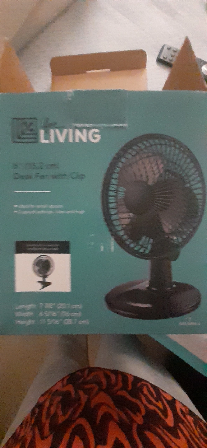 Selling a Living 6" desk fan with clip. It's black and comes with its original box.