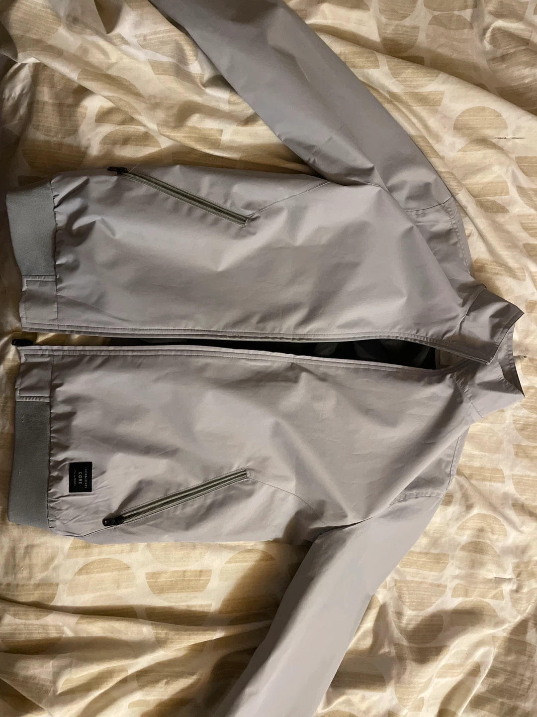 Grey bomber jacket from Jack & Jones CORE collection. It's made with a smooth outer shell and has zippered pockets. Lightweight design.