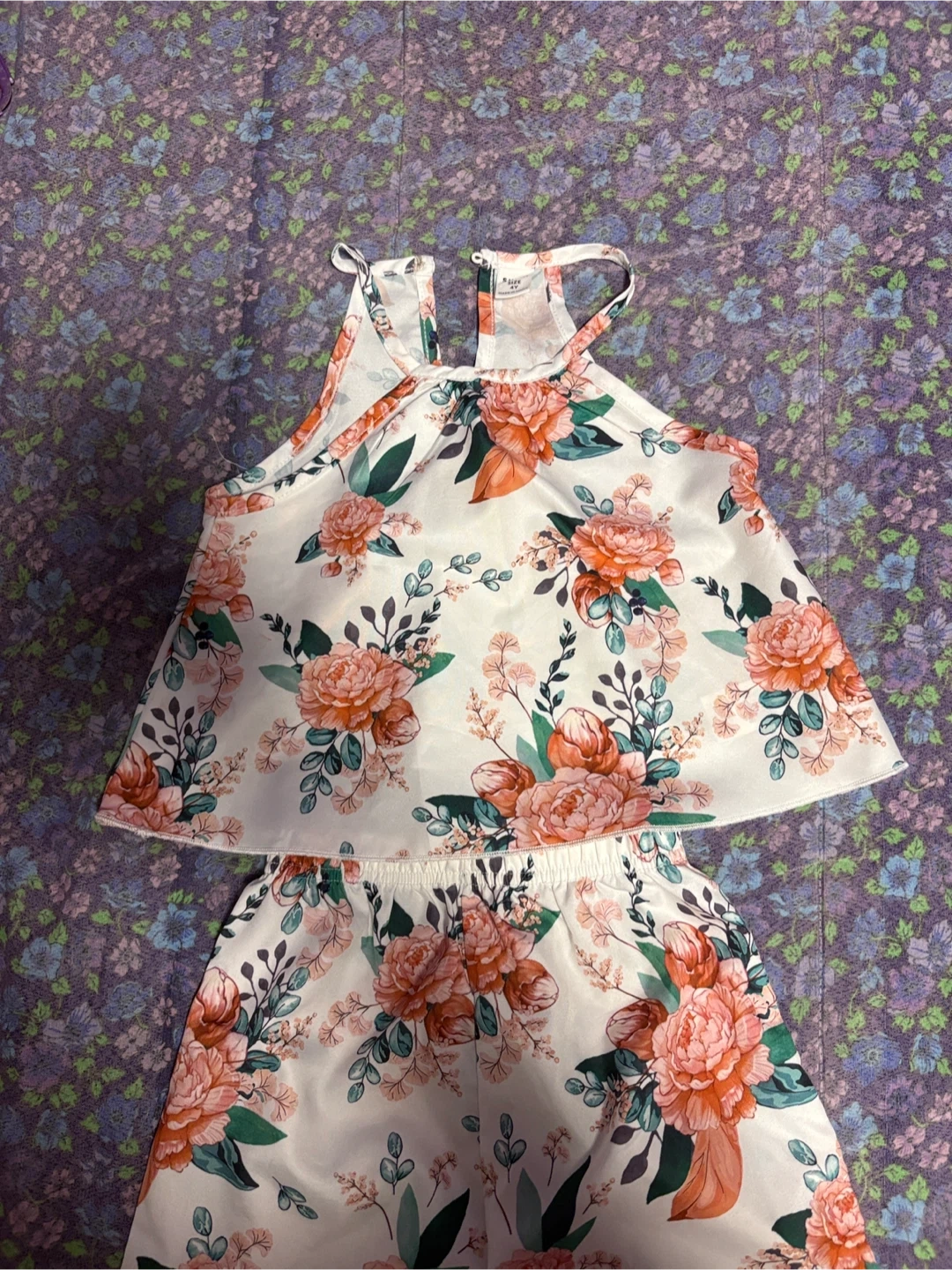 Selling a cute Shein two-piece set with a lovely floral pattern! The set is size 4Y, perfect for a little one. It's in great condition and ready for a new wardrobe