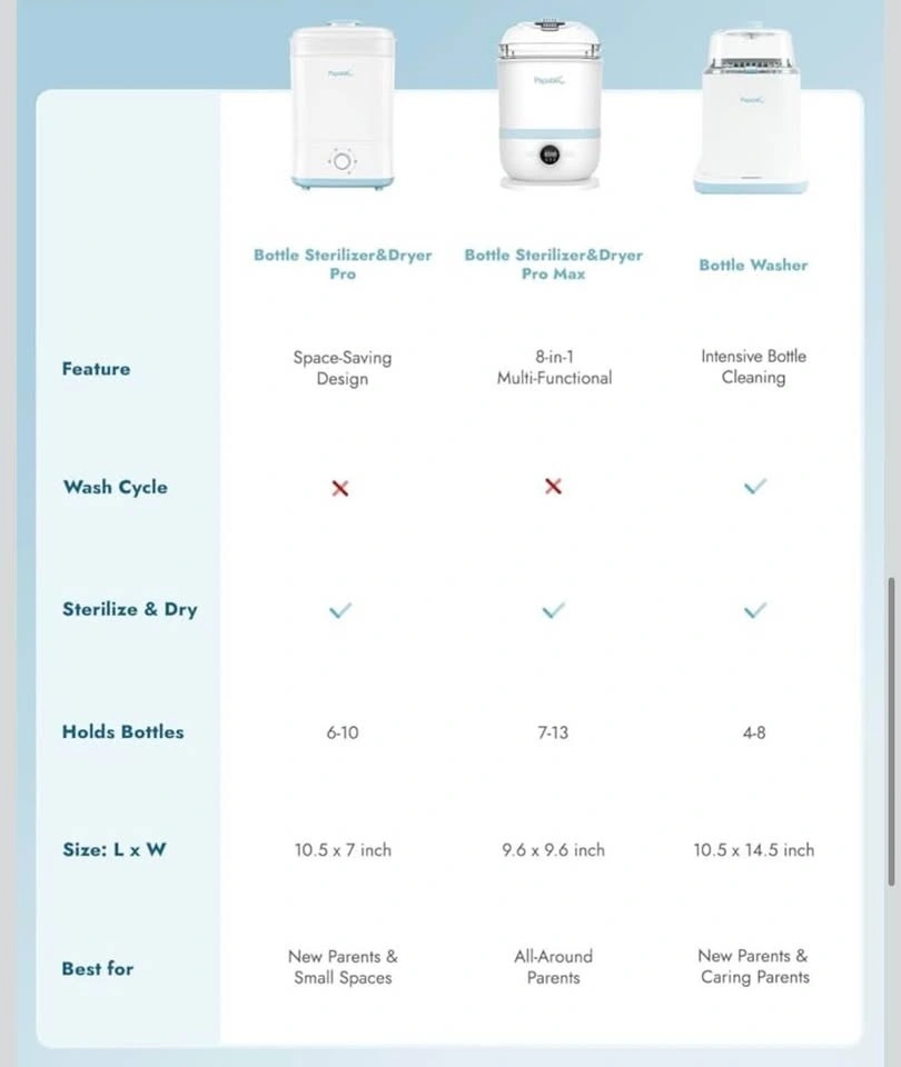 ⭐ Large 10-bottle capacity — fits bottles, pacifiers, pump parts & more