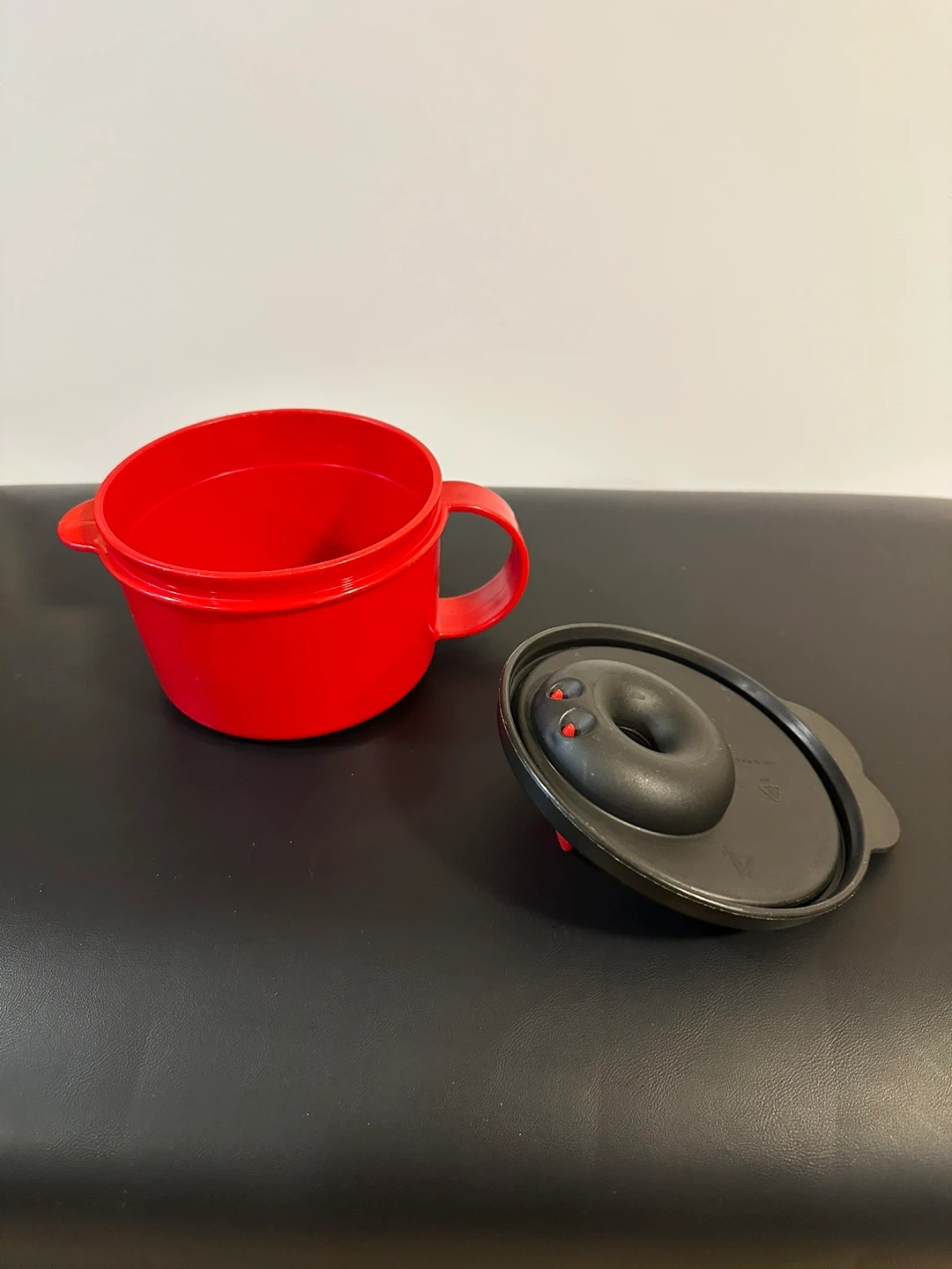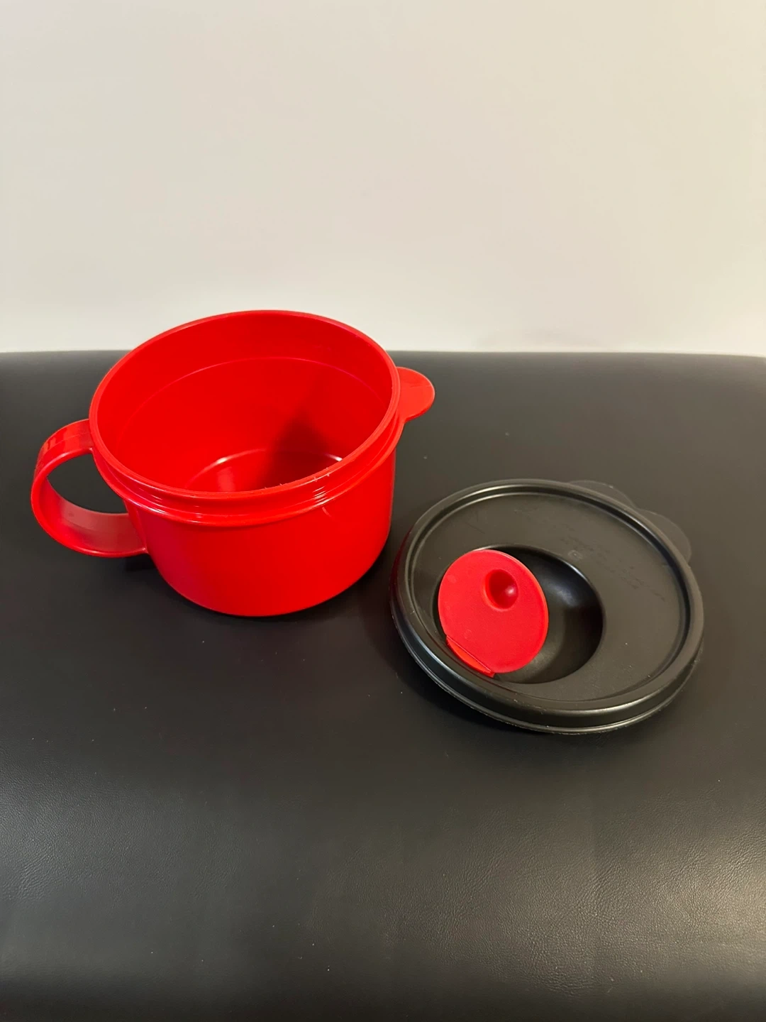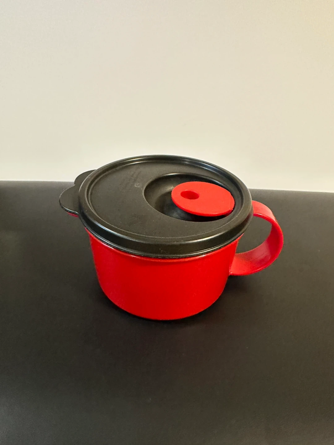 Selling a red Tupperware microwave soup mug! It's in great shape and ready for your next cozy soup night. Perfect for heating up leftovers or making a quick lunch. The lid is included, making it easy to transport your soup without spills
