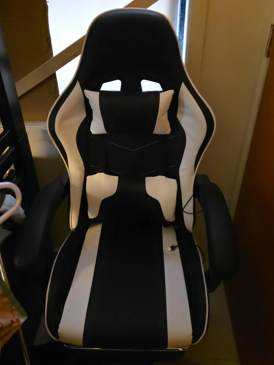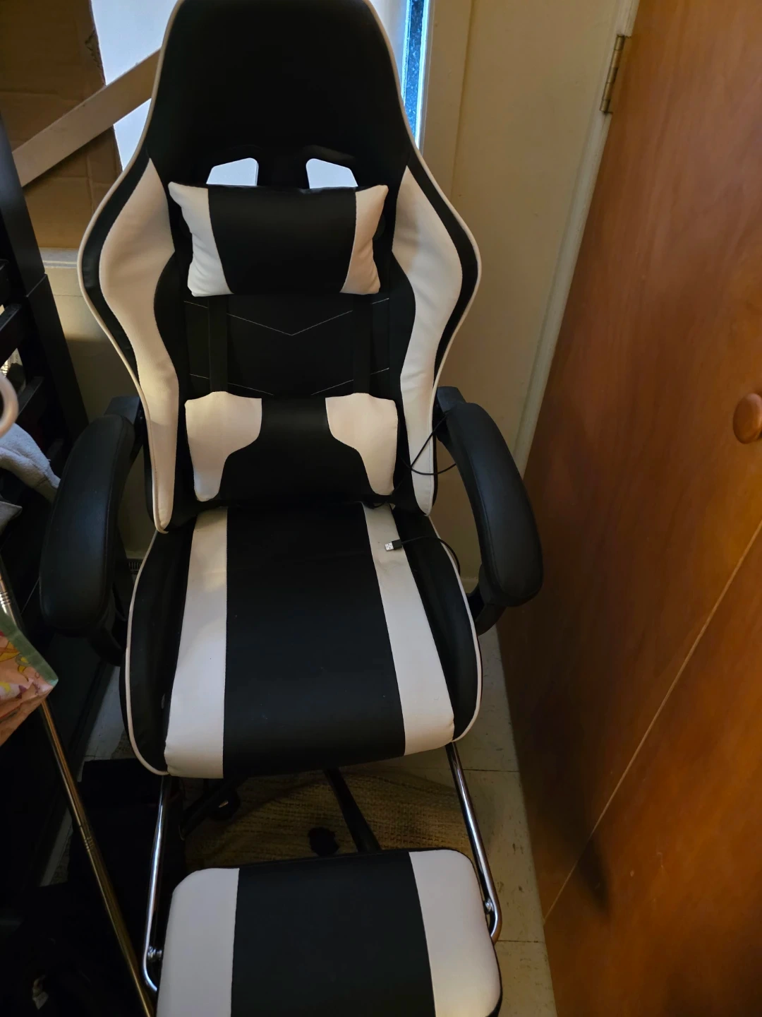 Buy & SellGaming Chair with FootrestGaming Chair with Footrest$103This black and white gaming chair comes with a removable footrest for added comfort. It features adjustable seat and headrest pillows. ConditionLike newWHERE TO MEET195 carpenter AveView MapSELLERverifiedNicholasMount Kisco650 reviews1 chats·0 favorites·23 viewsSEND CHAT TO SELLERHi Nicholas! I’m interested in your listing.Hi Nicholas! I’m interested in your listing.Get the Karrot app to chatSign In to chat