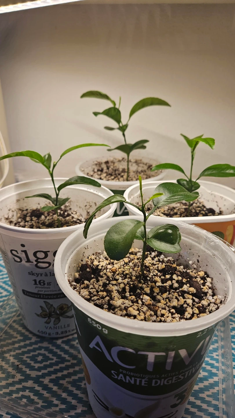 Young mandarin orange seedlings grown for 2 months! Can be repotted and grown near a sunny window or kept in the cup till they're bigger! โ๏ธ๐