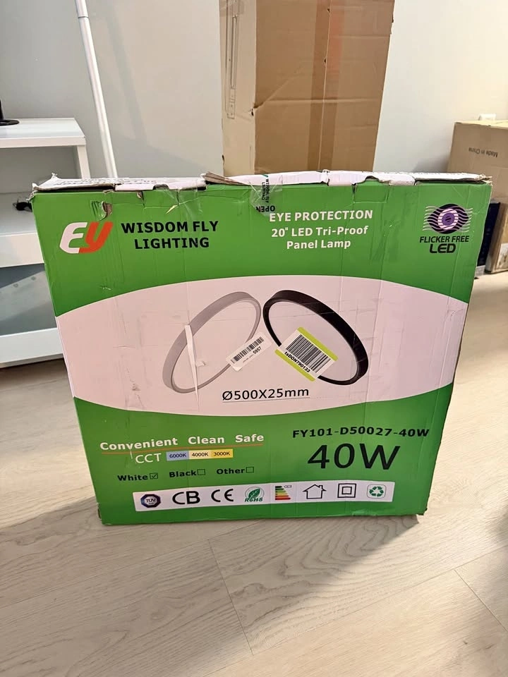 Brand new in box. Retails for $219 plus taxes. A brand-new, stylish 20-inch lighting fixture. It offers a modern look with efficient LED technology, perfect for living rooms or bedrooms. High-quality finish that adds a touch of elegance to your home. Easy to install with standard ceiling mounting. Bright and even illumination for any indoor space.