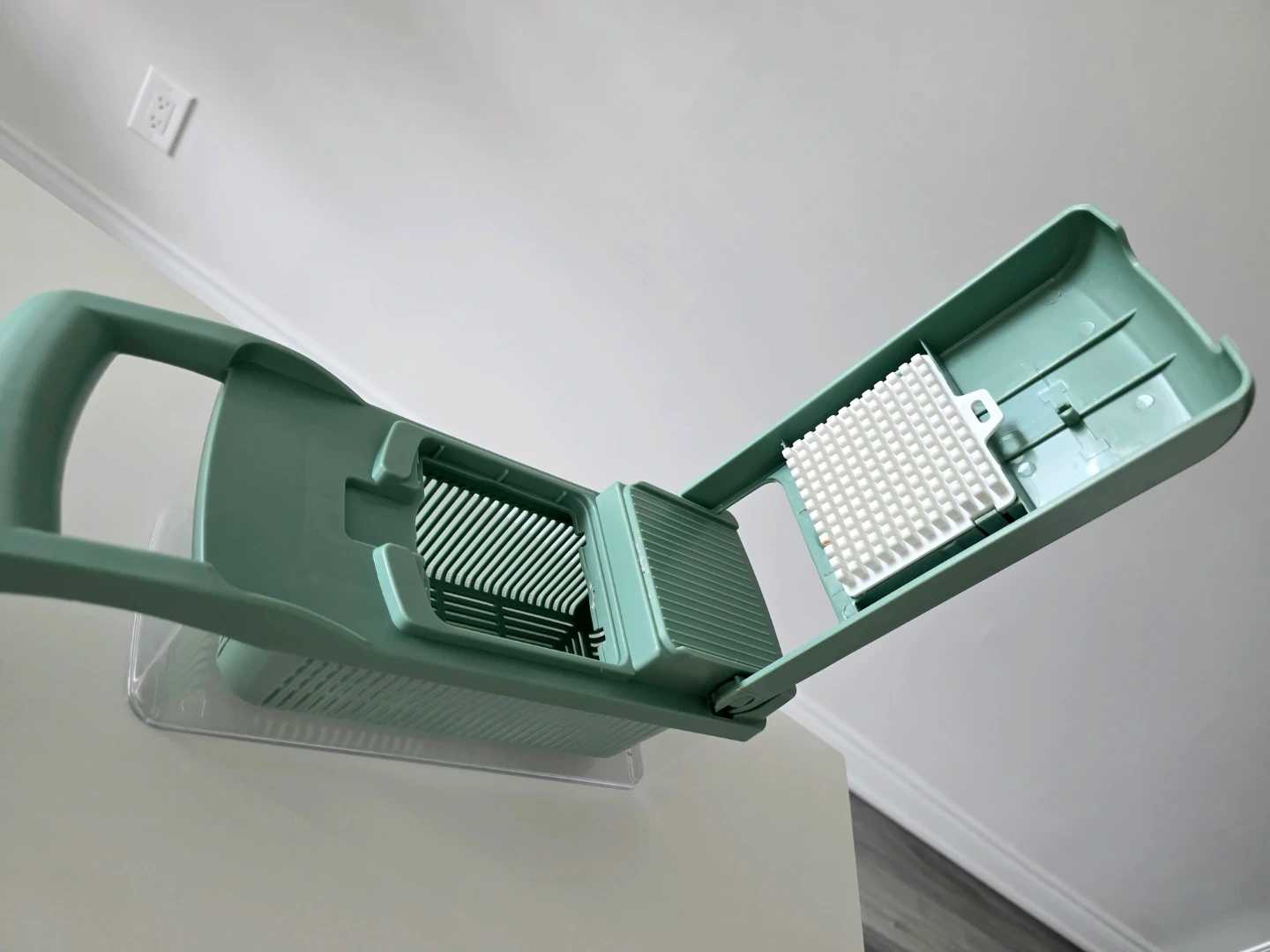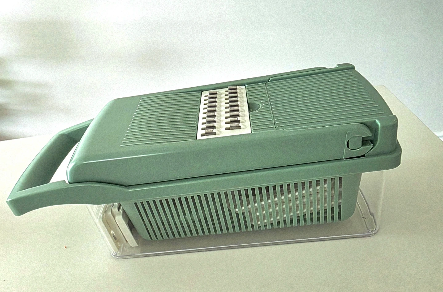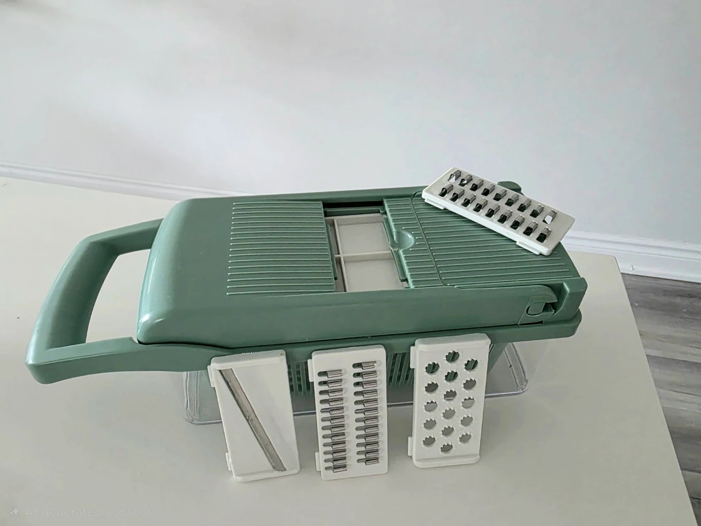 Includes multiple blades for slicing, dicing, and chopping vegetables, and an egg white separator.
