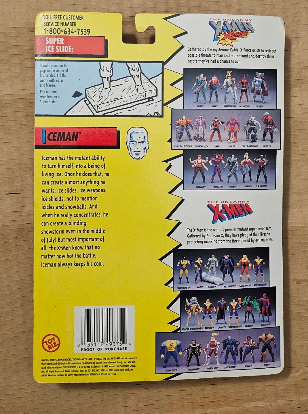 This is the Marvel X-Men Iceman action figure with a Super Ice Slide accessory. It's from Toy Biz and includes the original packaging and trading card. The figure features the mutant ability to turn himself into living ice!