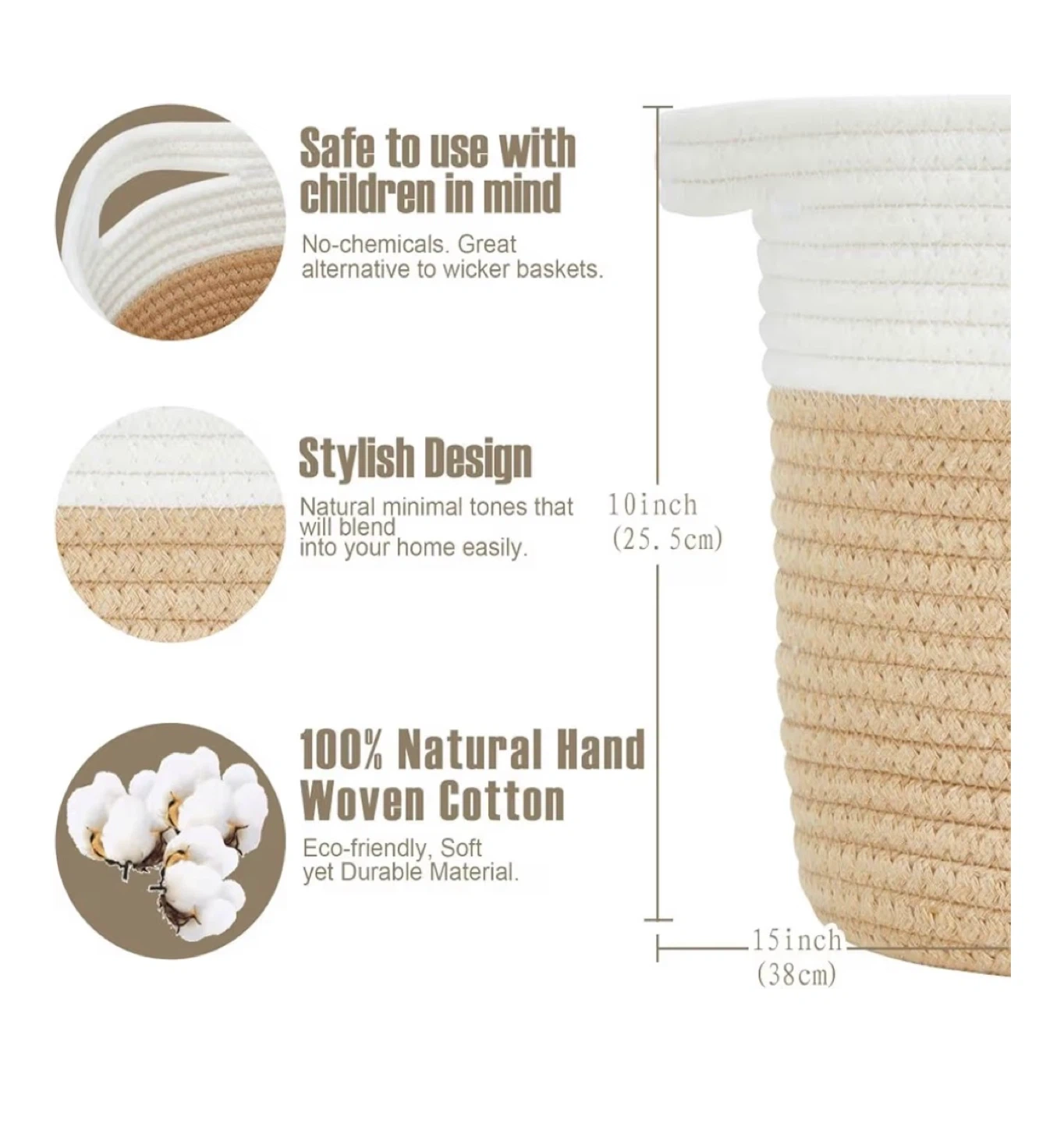 Skin-Friendly & Safe: Our woven storage basket is handmade with chemical-free, natural, durable cotton. Our storage baskets are safe around babies, pets, and loved ones.