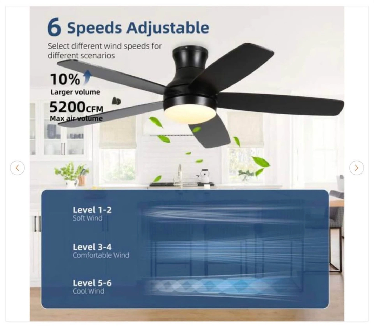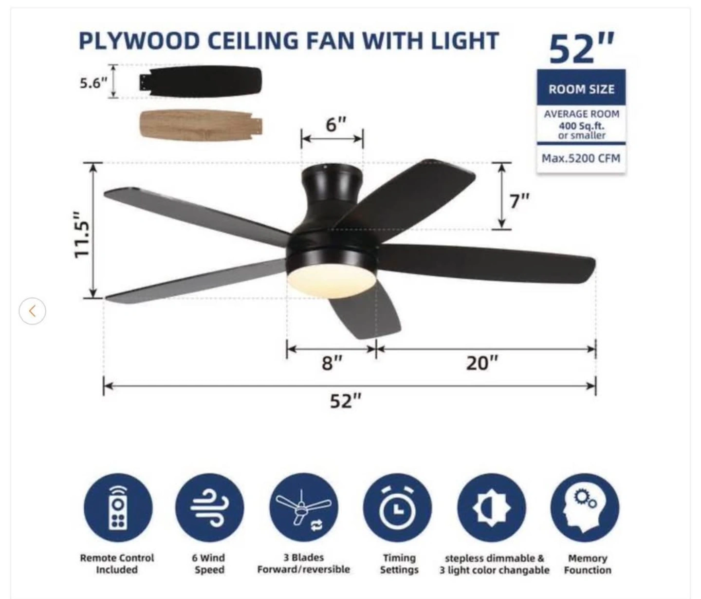 52" Smart Black Ceiling Fan with Dimmable LED Light - New
