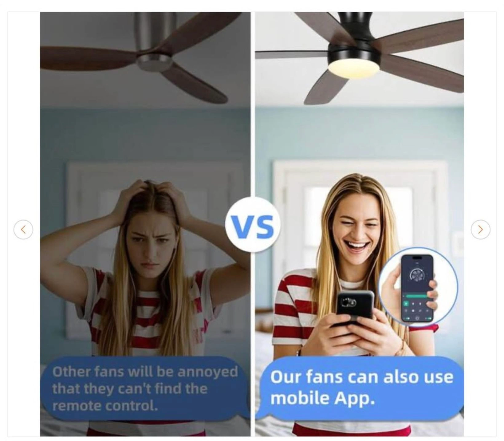 Brand new. Have 2 available. 52 inch smart indoor brushed black ceiling fan with light, dimmable LED, and app/remote included. Dual blade colors.