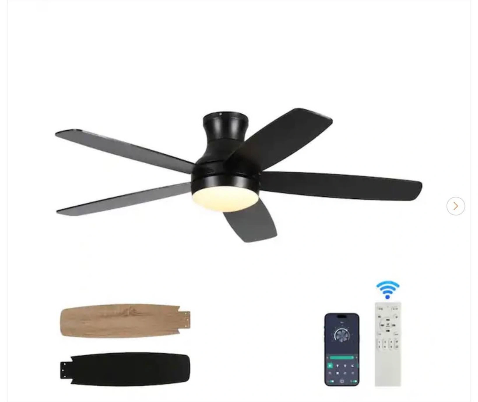 52" Smart Black Ceiling Fan with Dimmable LED Light - New