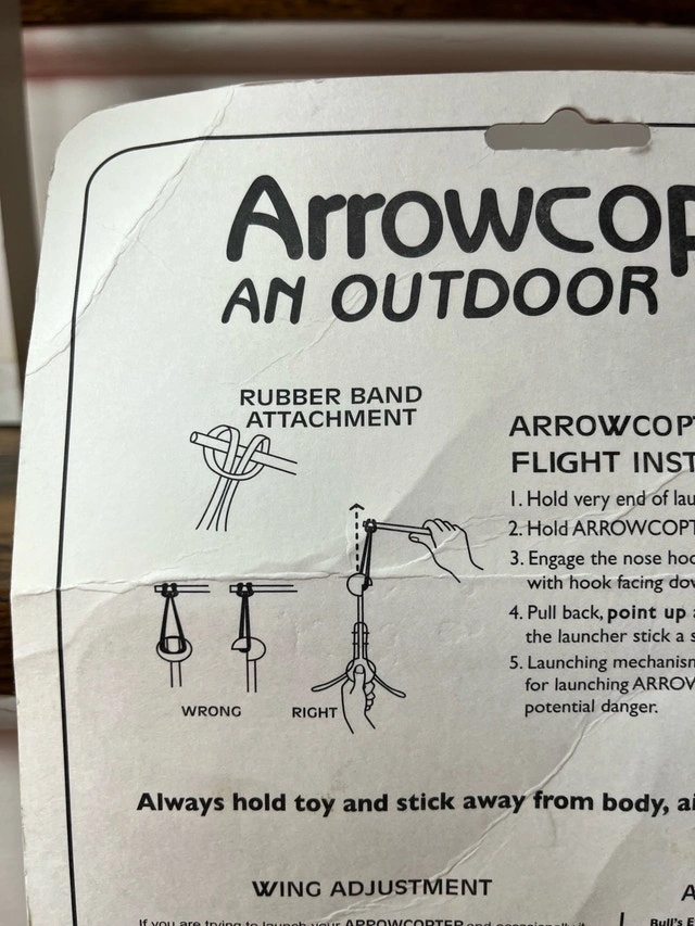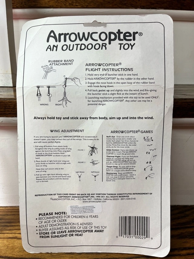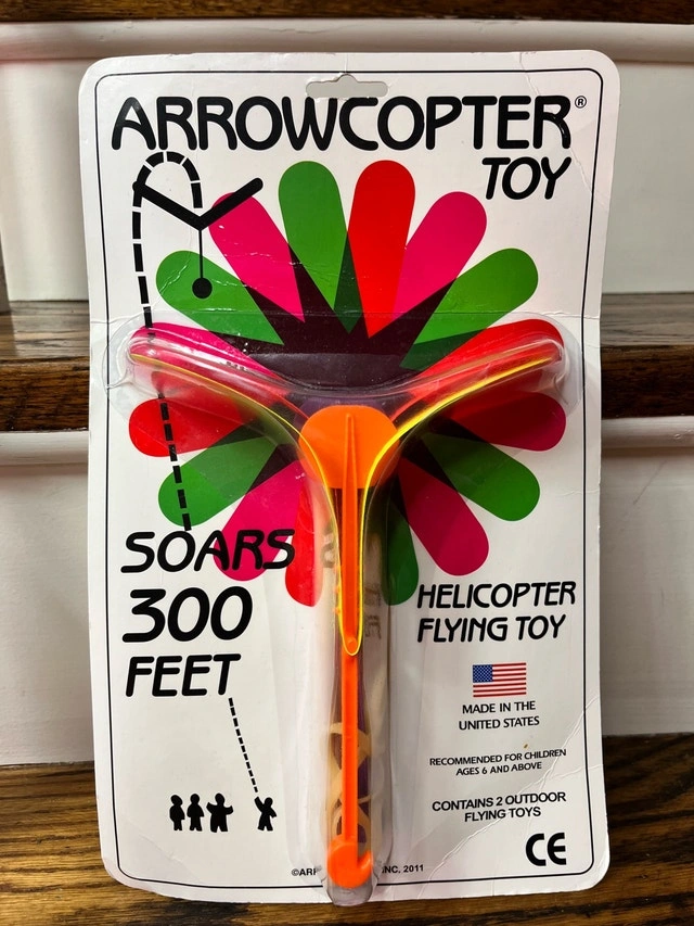 Up for sale is an Arrowcopter toy, still sealed in its original packaging, ready to soar up to 300 feet! It's an outdoor helicopter flying toy that's sure to provide hours of entertainment. This item is new and unopened. Check out my other listings for more cool stuff!