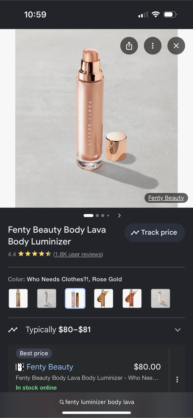 Shimmering body luminizer in the shade 'Who Needs Clothes?!, Rose Gold'. Includes original box. 90ml / 3fl. oz.