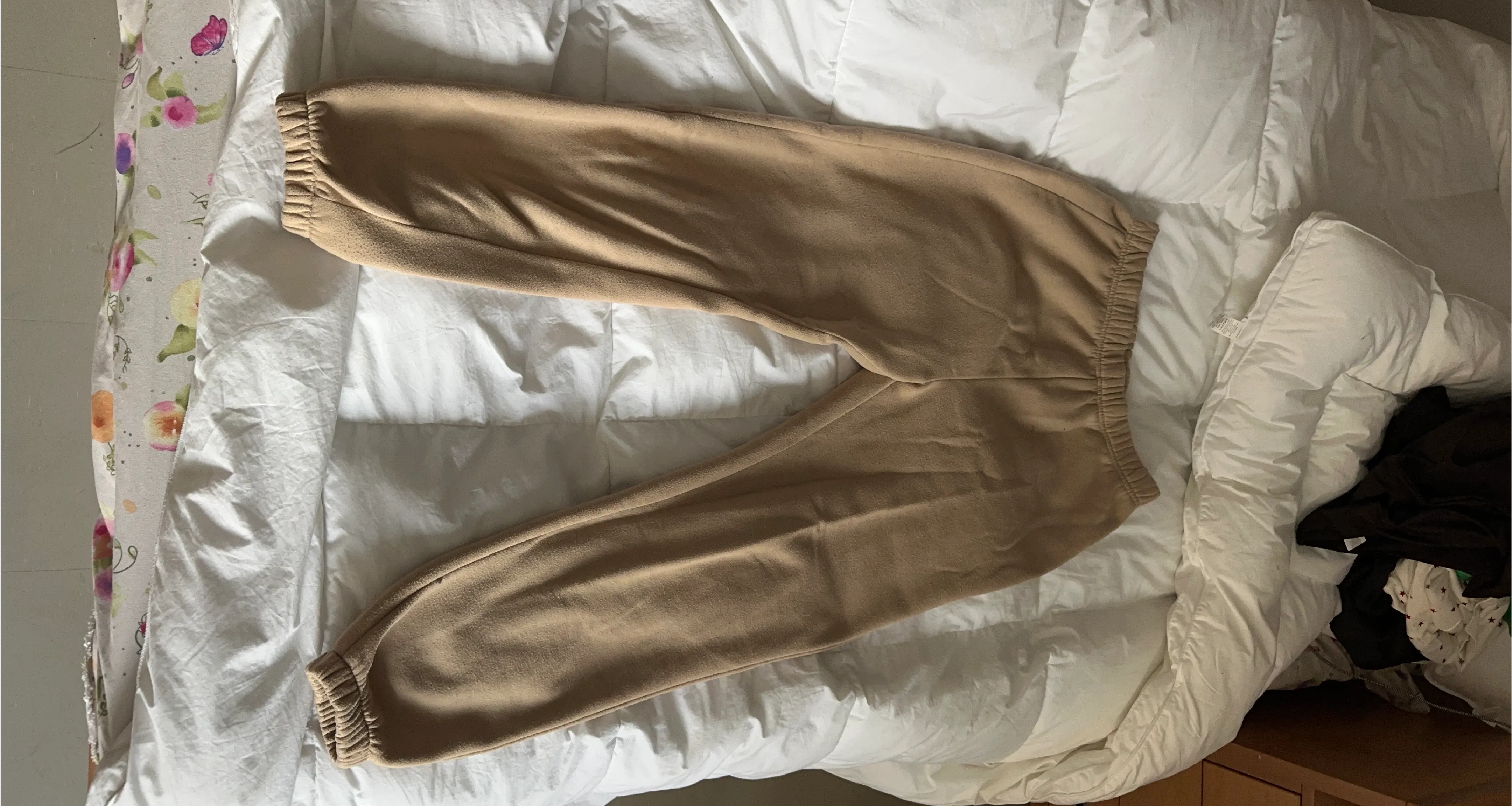 Selling a pair of beige jogger pants! They are in good condition and would be a great addition to your wardrobe for comfy days