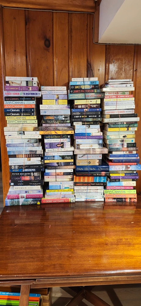 Huge lot of pre-owned paperback novels. Various authors and genres. Great for readers or book collectors. Sold as a bundle.