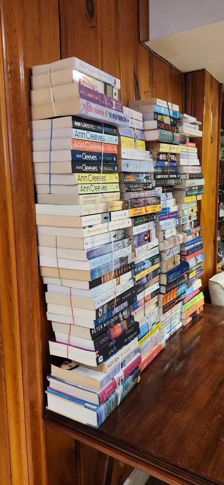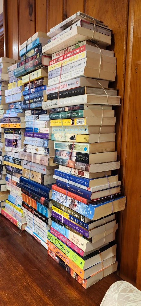 Huge lot of pre-owned paperback novels. Various authors and genres. Great for readers or book collectors. Sold as a bundle.