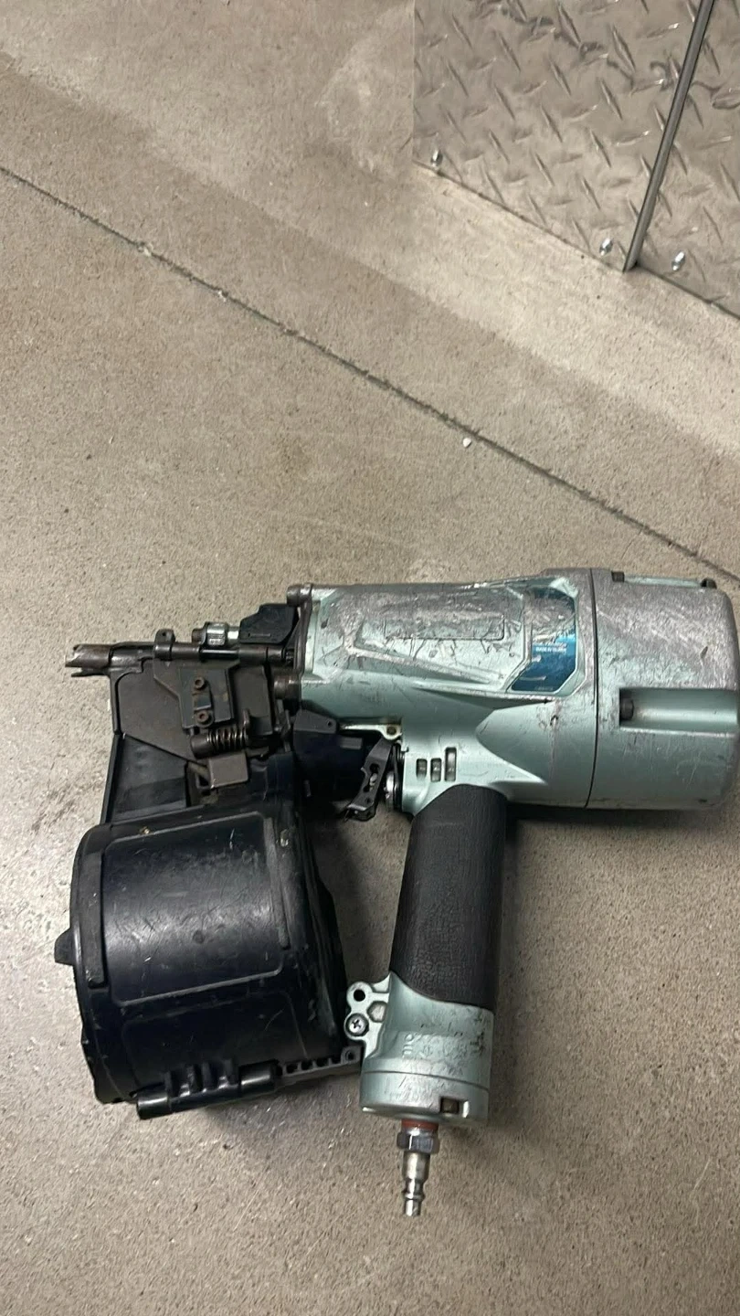 This is a Hitachi NR90GR framing nailer. It's a pneumatic tool designed for heavy-duty construction and framing tasks. It features a rotating belt hook for convenience on the job site. This nailer is great for contractors and DIYers needing to drive nails quickly and efficiently.parts only