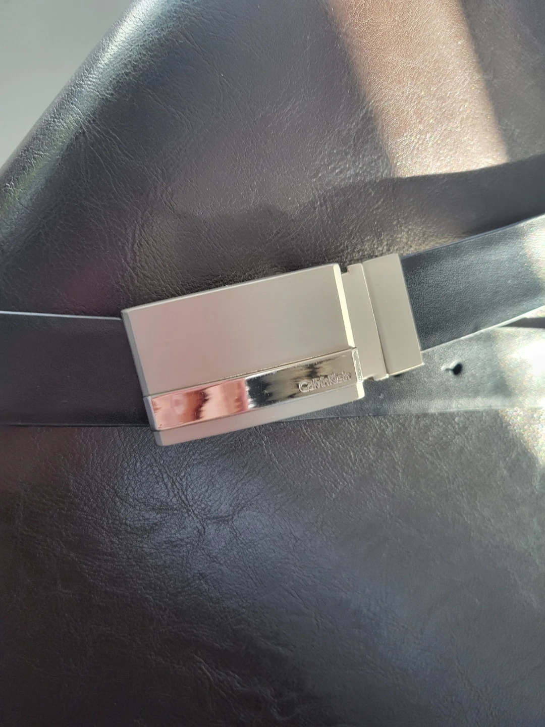 This Calvin Klein belt features a silver-tone buckle and is reversible, offering black and brown sides. It's a versatile accessory for your wardrobe. Belt is size 40. Xl