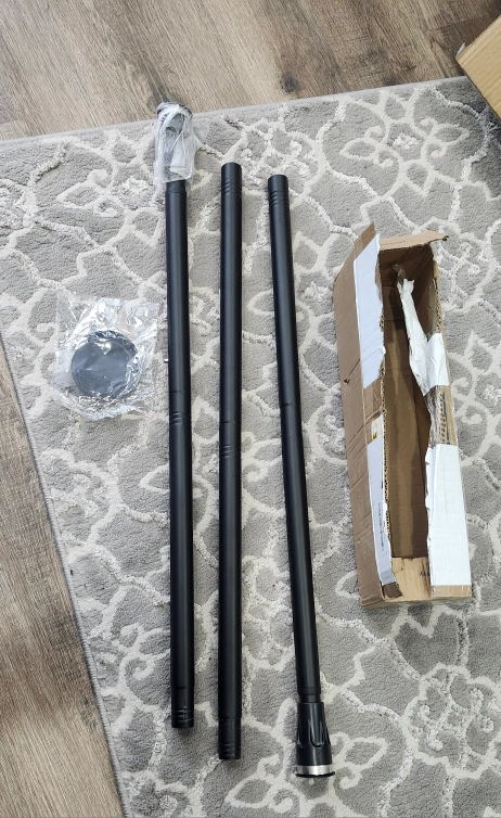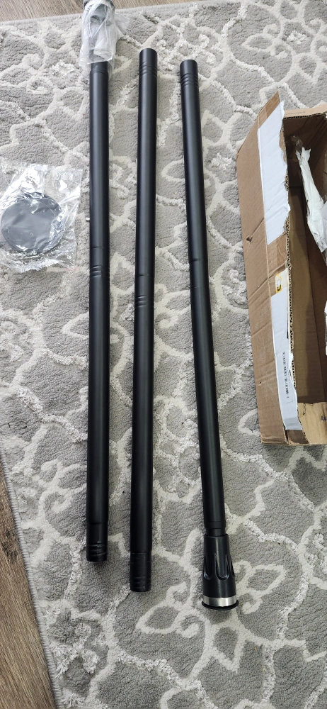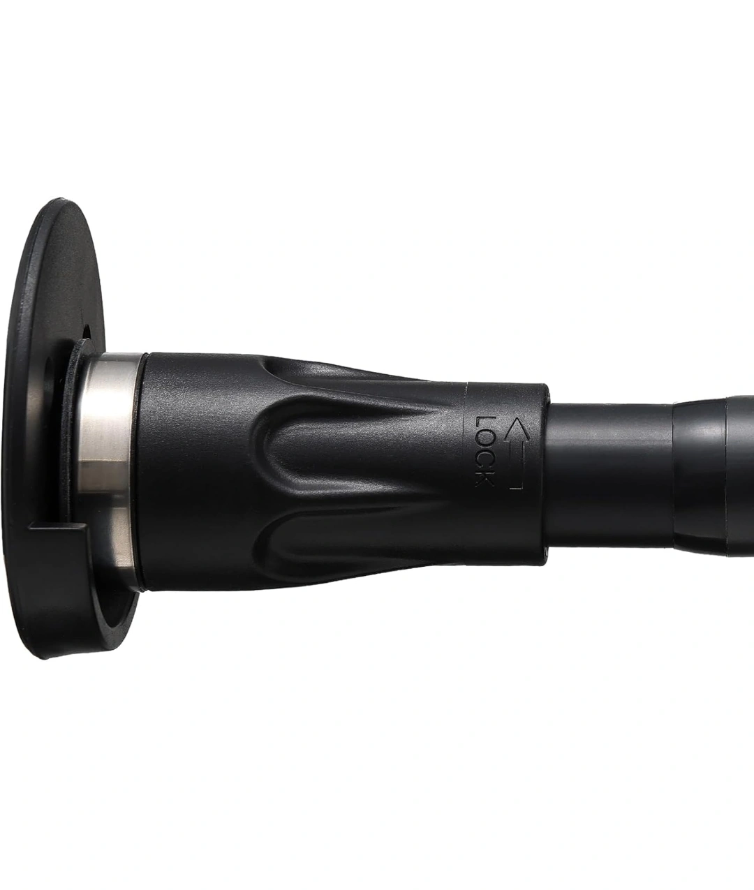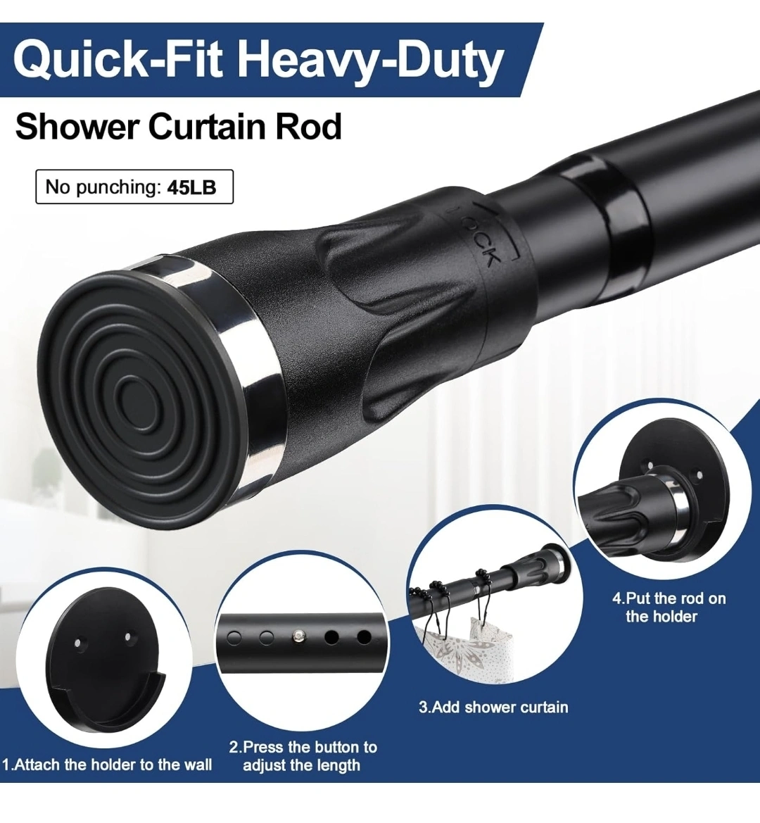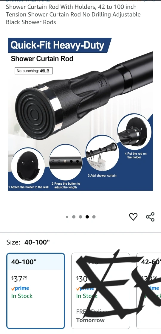 This is an adjustable tension shower curtain rod with holders. It's black and can extend from 42 to 100 inches. It's a quick-fit, heavy-duty rod that doesn't require any drilling.