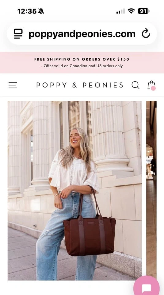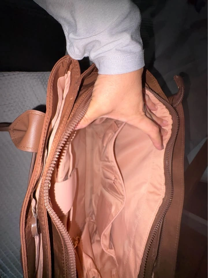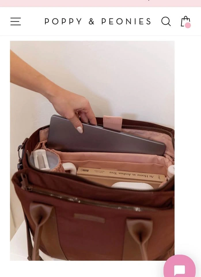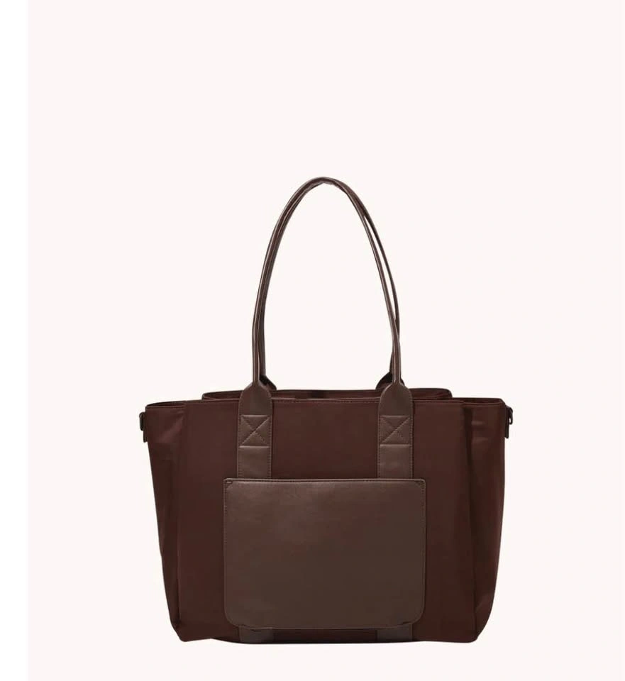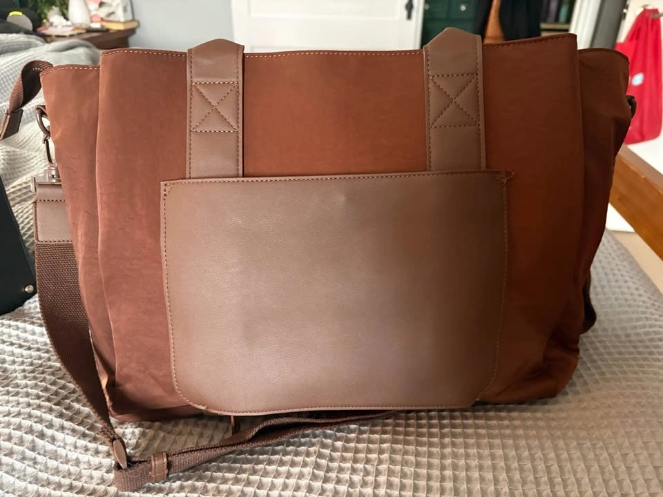This Poppy & Peonies Daily Tote in Espresso is a structured bag made of nylon fabric with vegan leather trim. It has both top handles and a detachable shoulder strap, with an interior featuring lots of compartments for organization. Great for everyday use or as a stylish diaper bag. From a smoke-free home. Used twice for my laptop. Pickup in South Windsor.