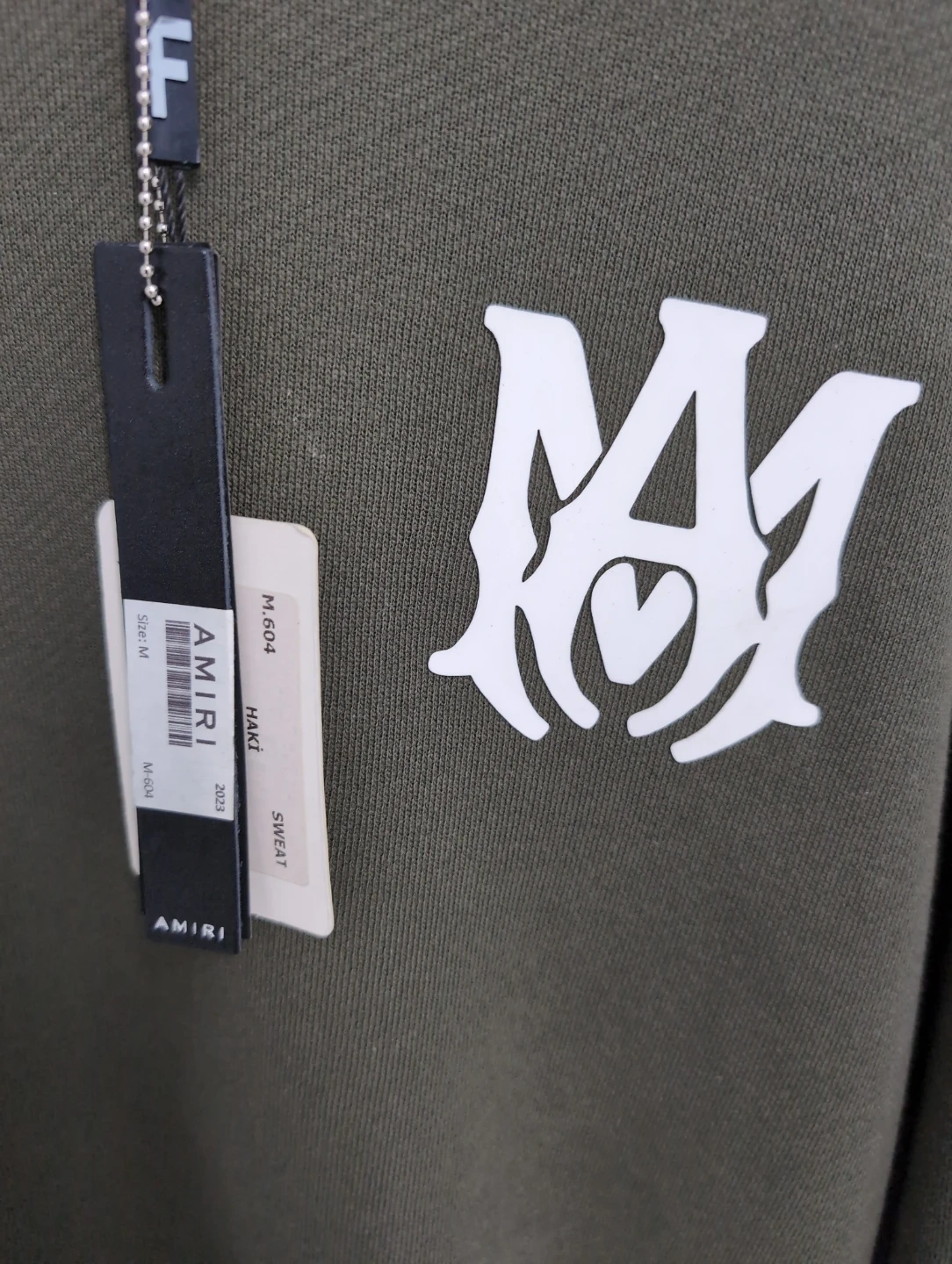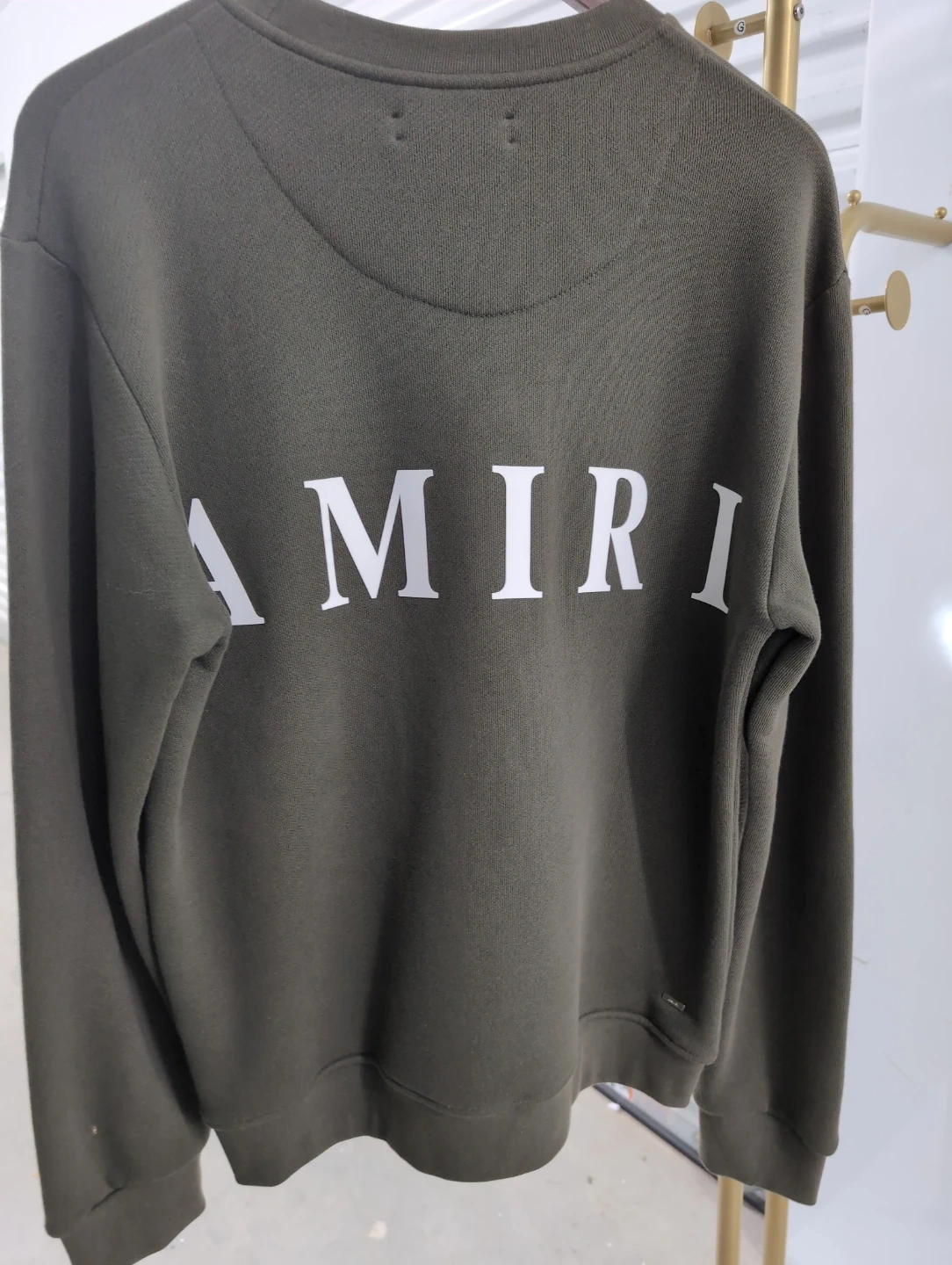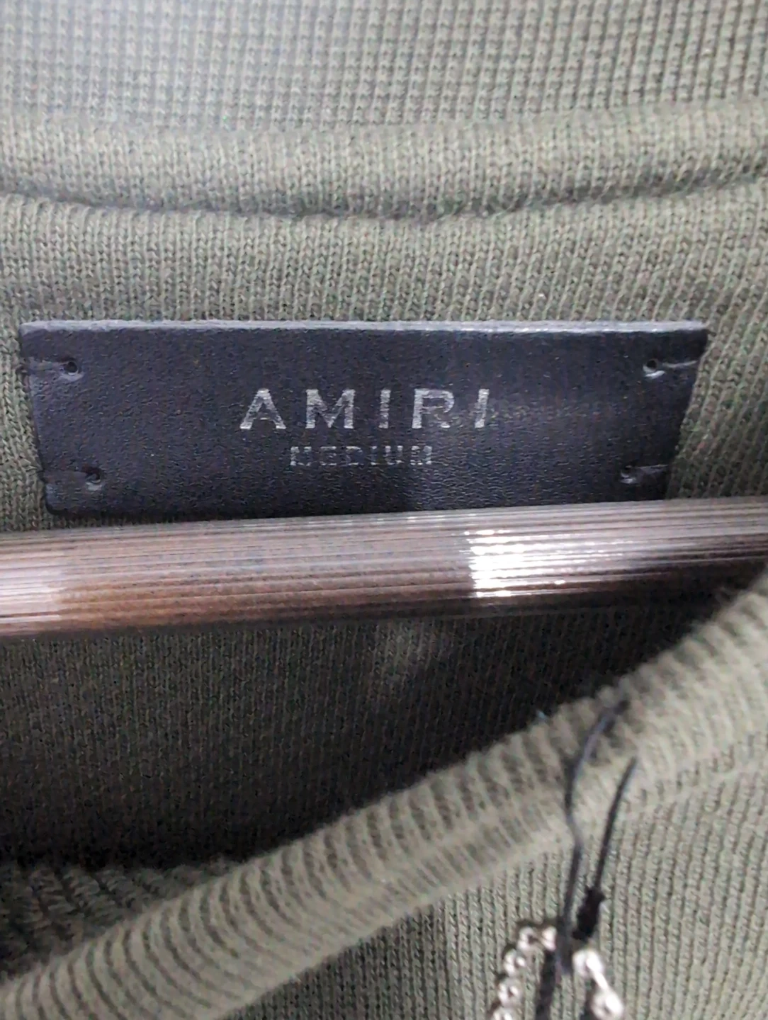 Selling an AMIRI sweatshirt in size medium! It's a cool haki colour and features the brand's logo on the front and back. Perfect for adding a stylish touch to your wardrobe