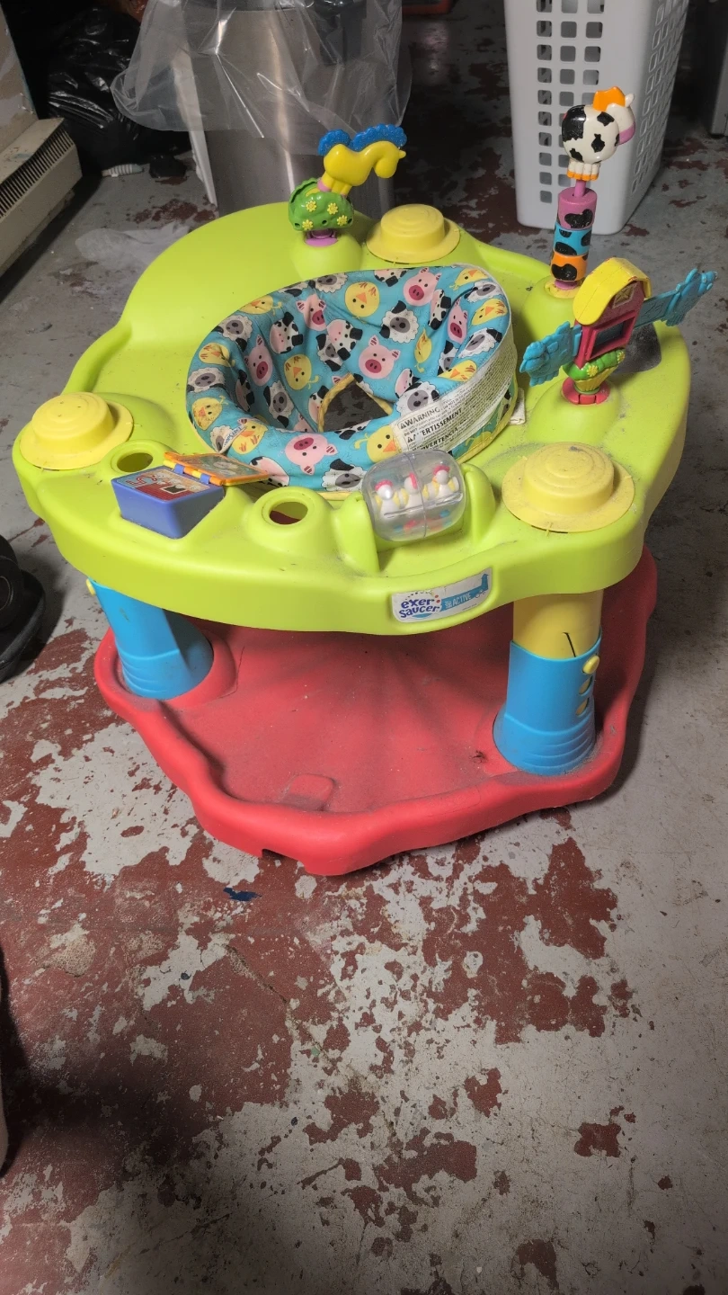 This Baby Einstein ExerSaucer is a fun activity center for little ones. It has a comfortable seat and multiple toys to keep them entertained. The bright colors and farm animal theme are engaging for babies. It's a great way for babies to play and explore while staying safely in one place.