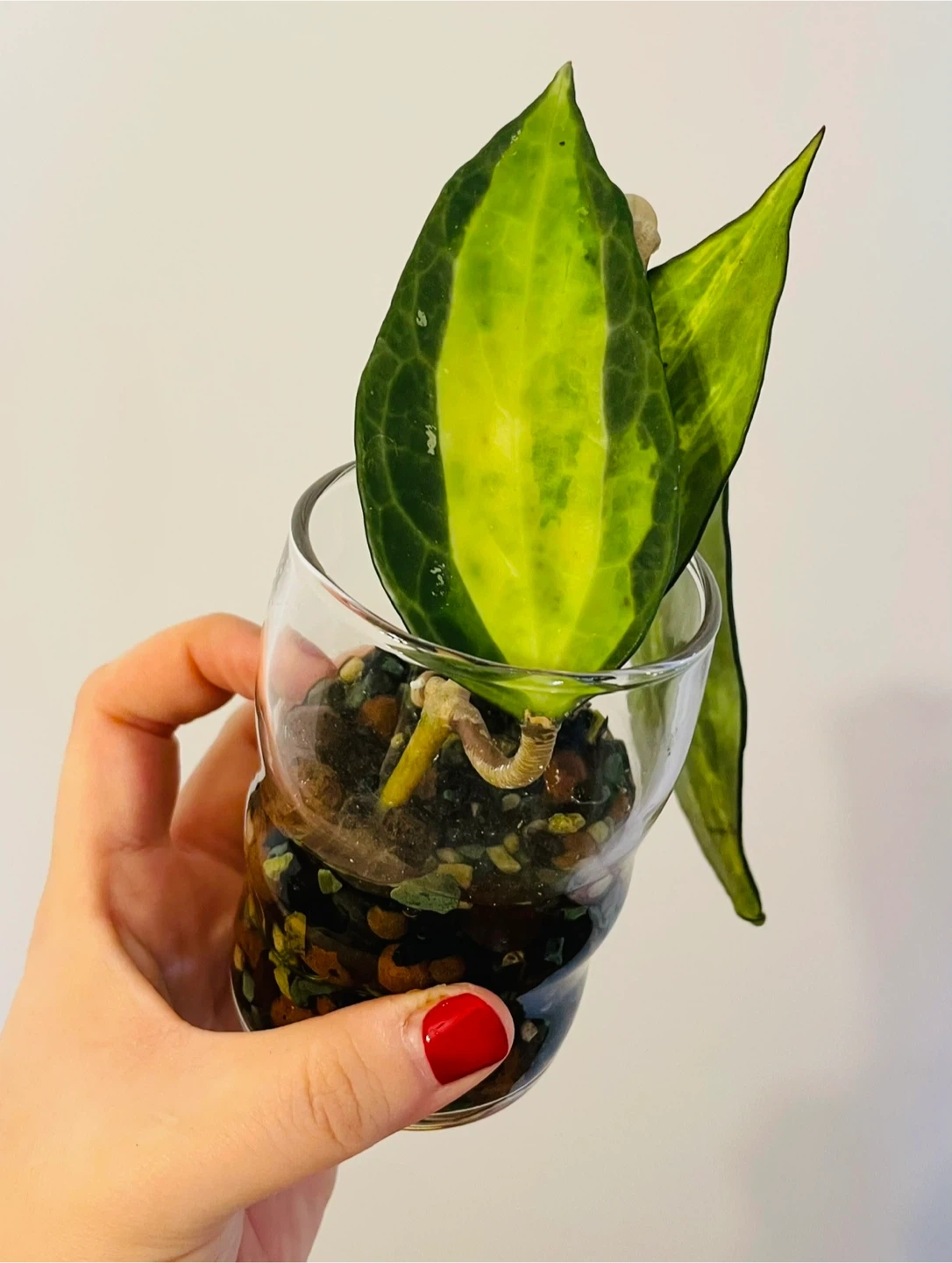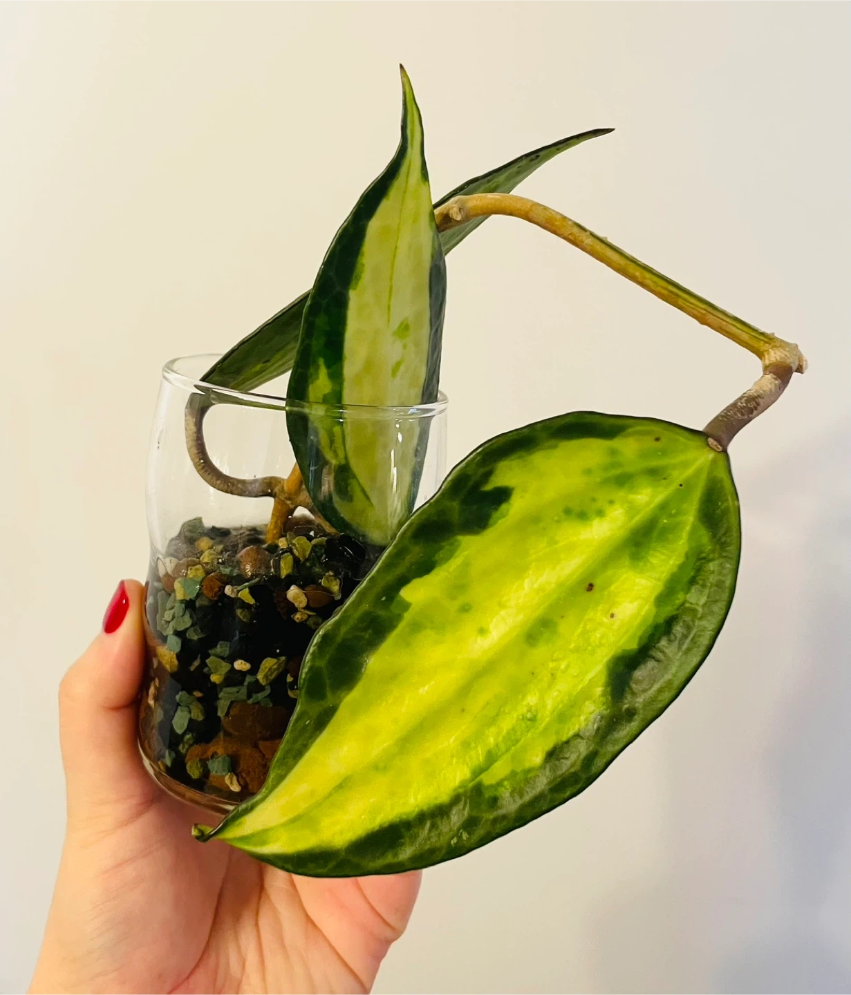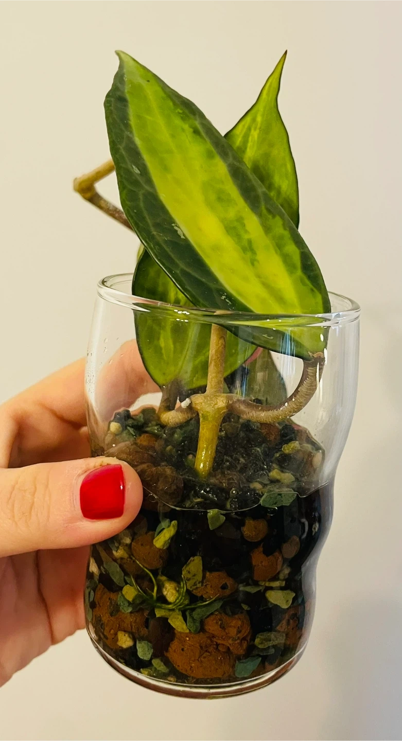 Stunning inner variegation with active growth and a healthy, visible root system. Currently established in semi-hydro (LECA/stones) for easy maintenance. Thrives in bright indirect light; water when the reservoir is low. A hardy, collector-grade plant perfect for any level.
