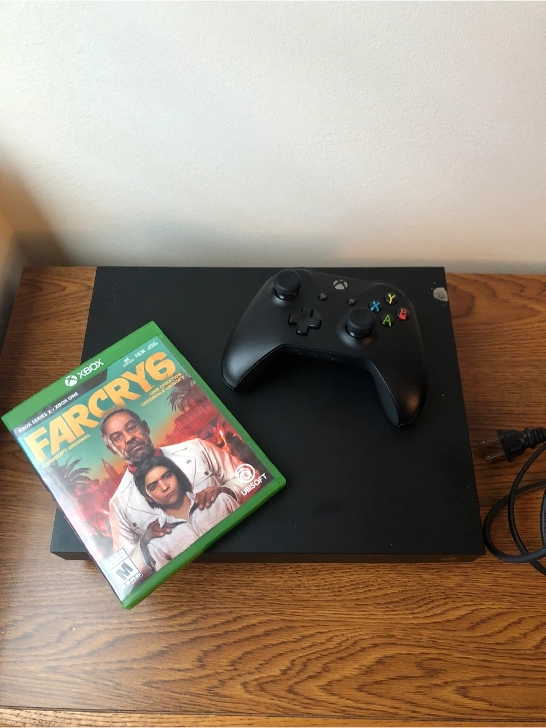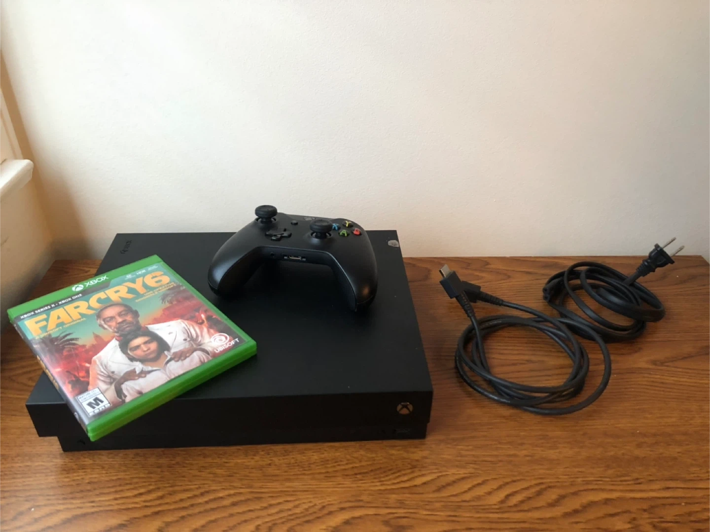 Xbox one X comes with a controller, HDMI cable, power cable and Fair Cry 6