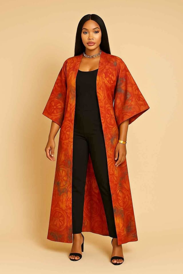 The longline open jacket in Adire crepe is perfect for adding a touch of elegance to any outfit. The fact that it's an overlay makes it easy to layer over dresses, jeans, or shorts for a chic, put-together look. This is a one-of-a-kind piece.