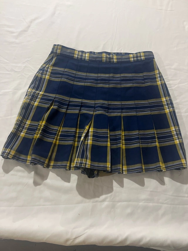 This St. Anne's ladies skirt, in a size 14, features a stylish blue and yellow plaid pattern and is in new condition. Perfect for adding a touch of classic charm to your wardrobe, this skirt is both versatile and fashionable. The skirt has a wrap around element in the front. Size: 14, Brand: St. Anne's, Colour: Blue, Yellow and white. Feel free to message if you have any questions!