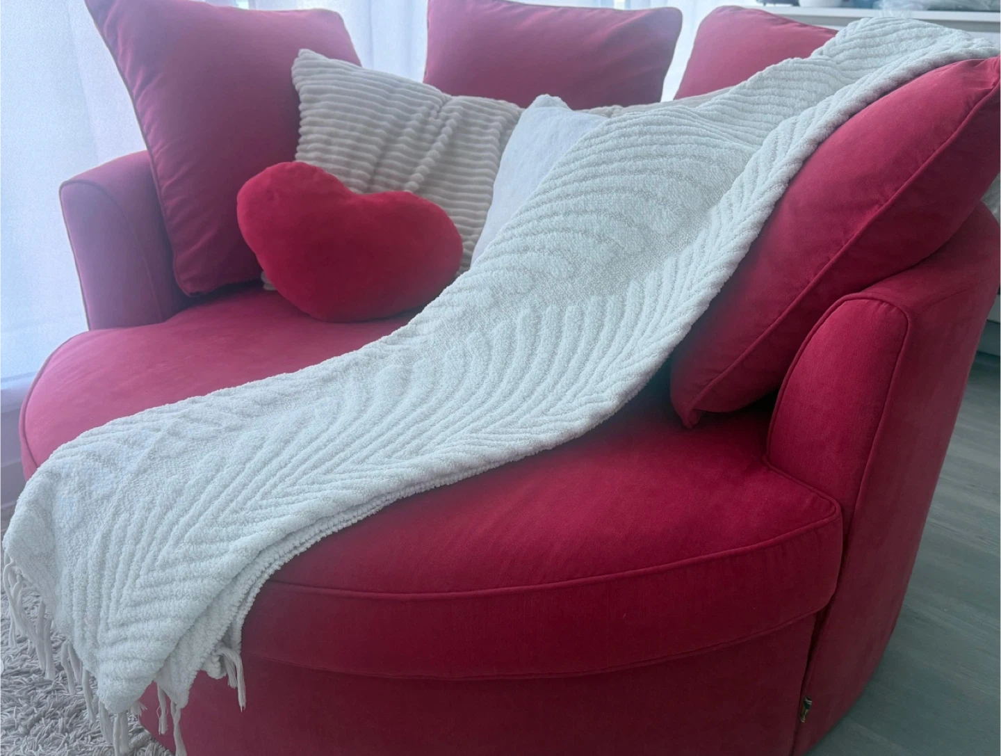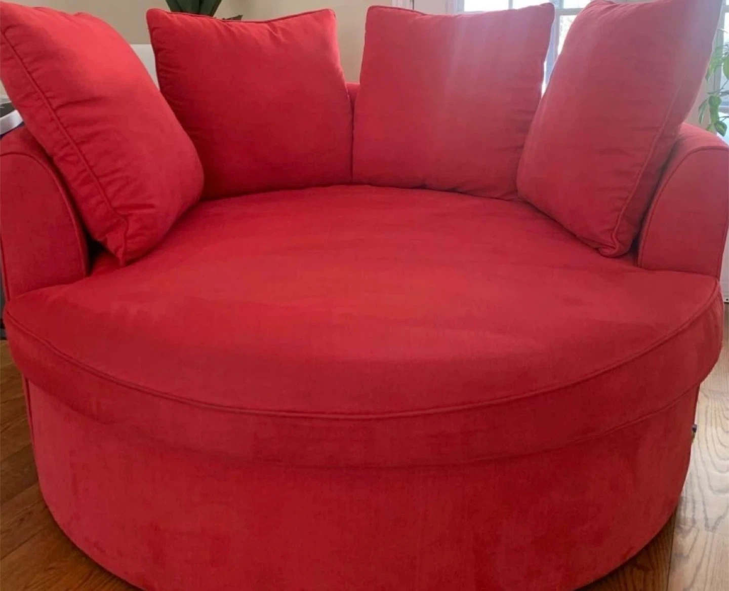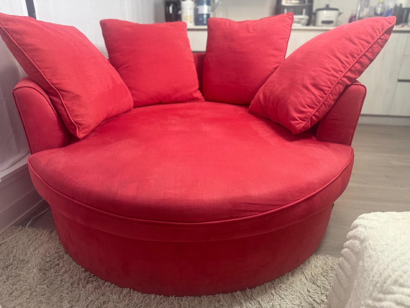 Beautiful cuddle chair. It's super cozy and perfect for relaxing, reading a book, or watching your favorite show with the family, as it's very spacious and comfortable.