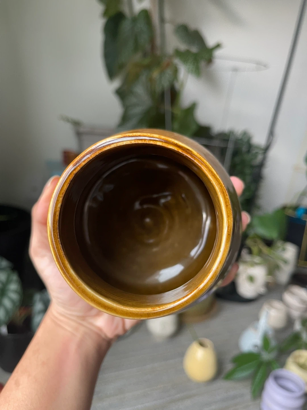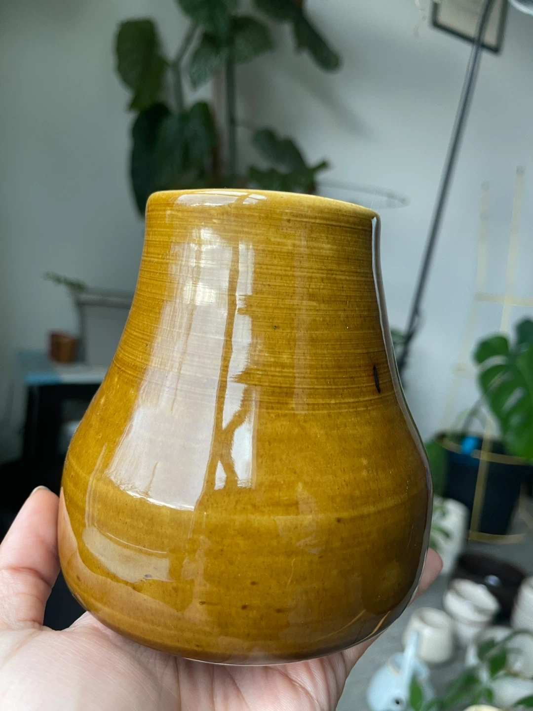 Here's a lovely honey mustard ceramic vase that could be a great addition to your home decor! It's big, new and ready to display your favourite flowers or stand alone as a decorative piece.