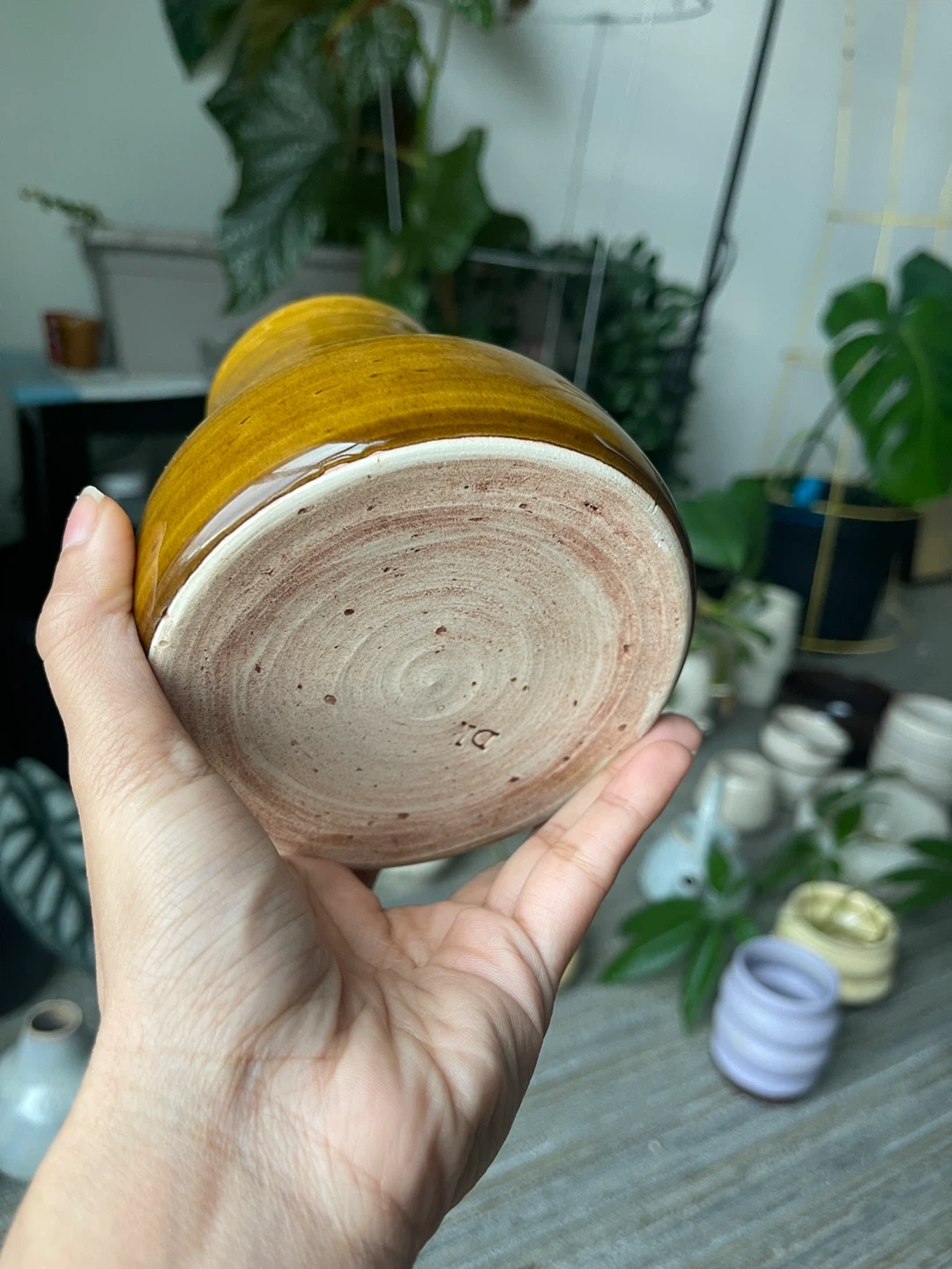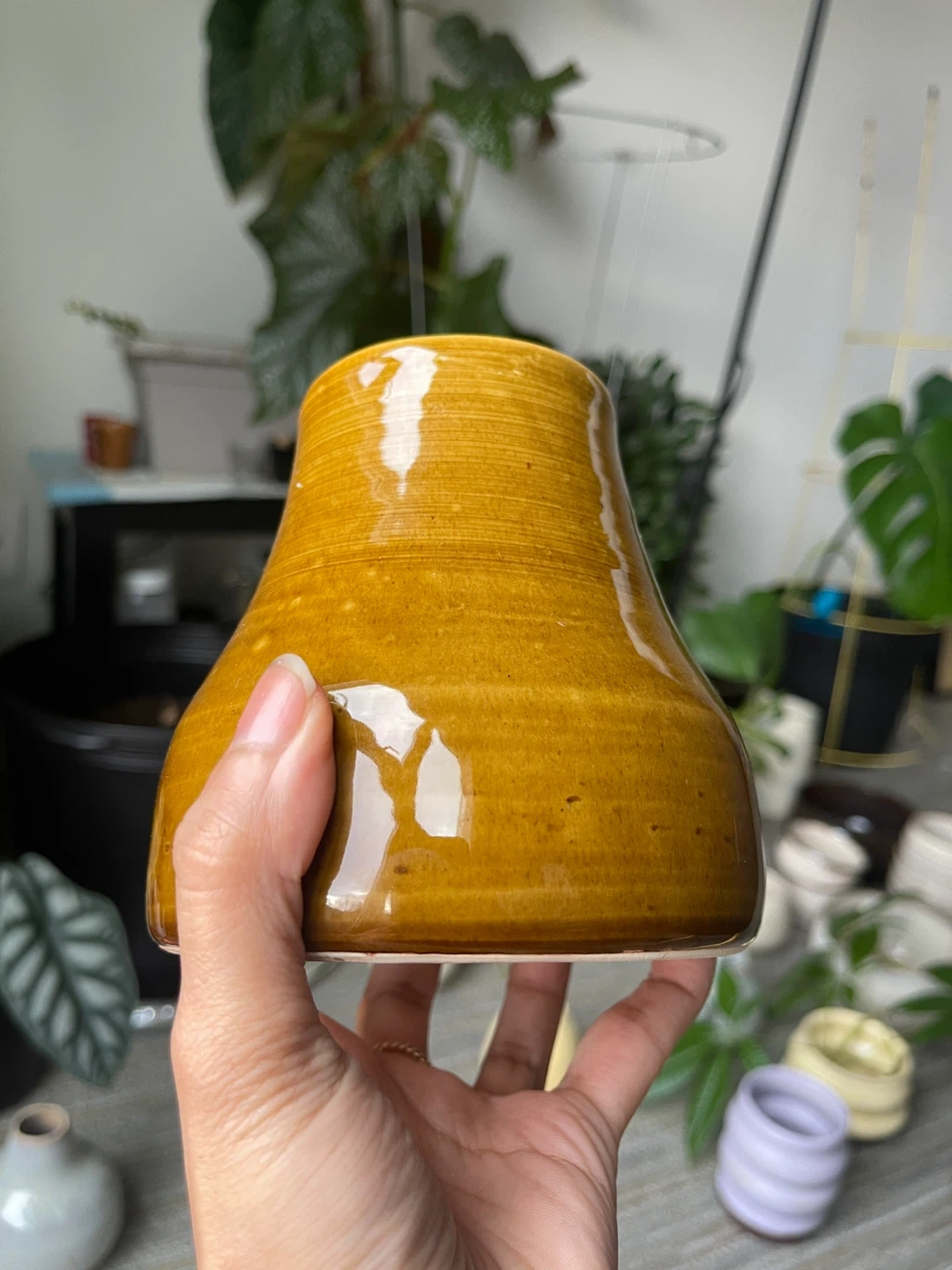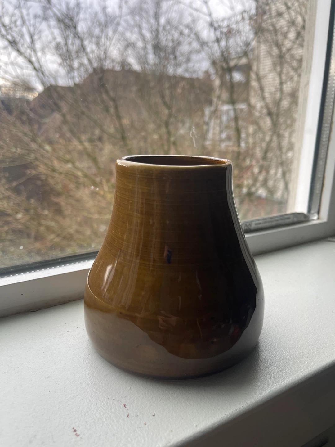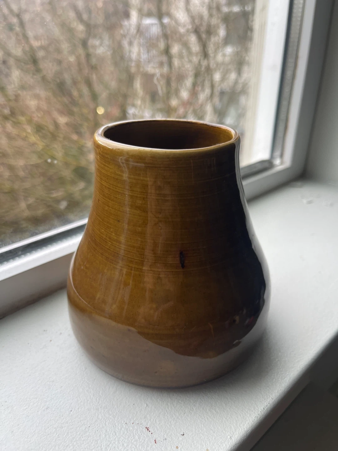 Here's a lovely honey mustard ceramic vase that could be a great addition to your home decor! It's big, new and ready to display your favourite flowers or stand alone as a decorative piece.