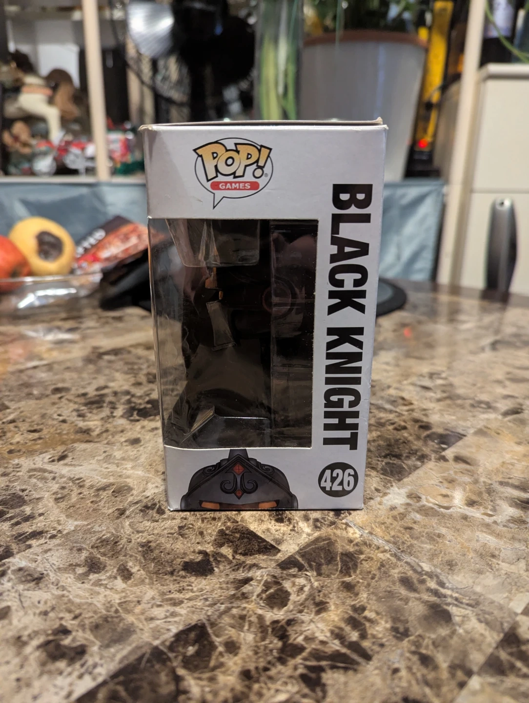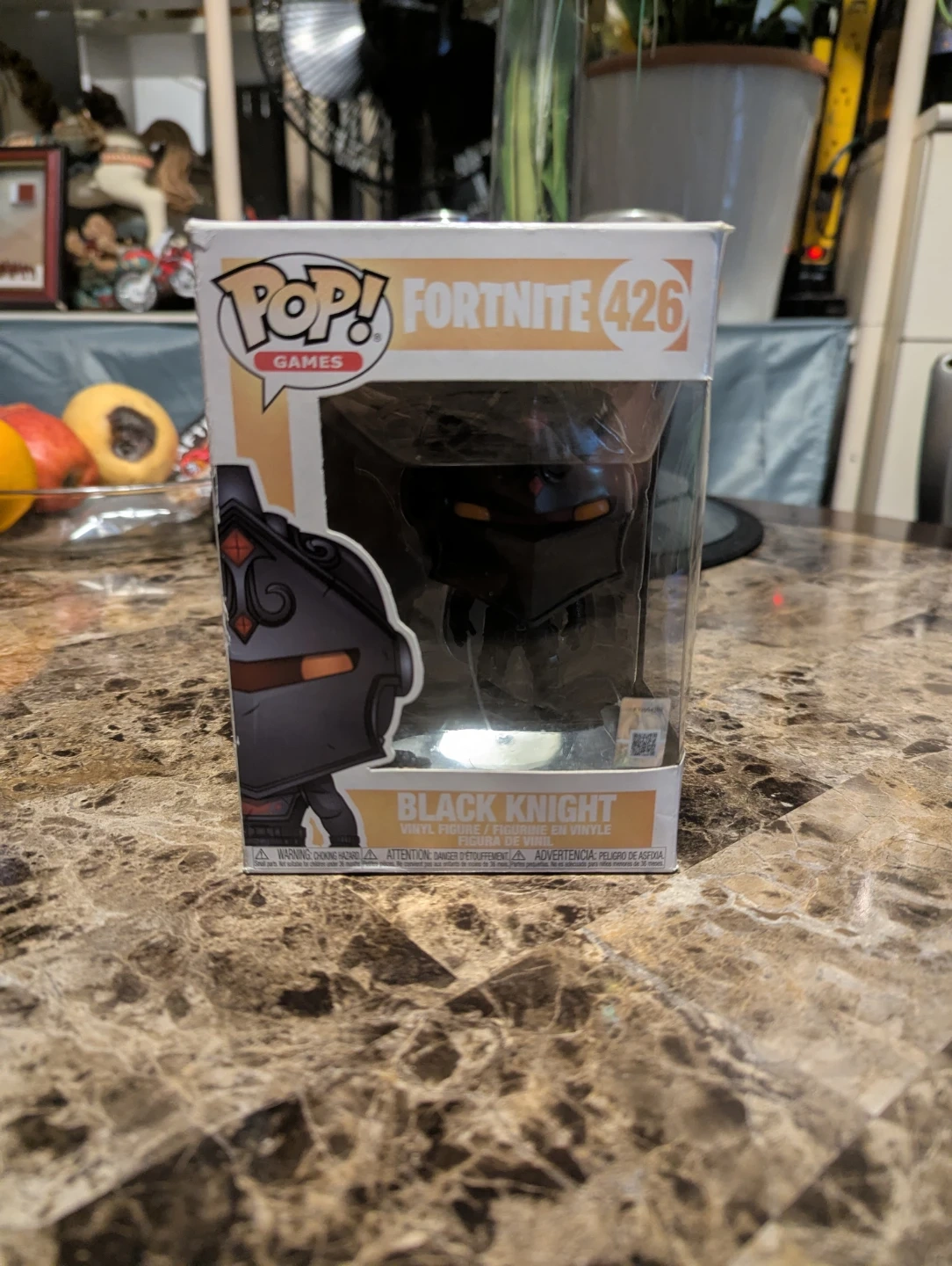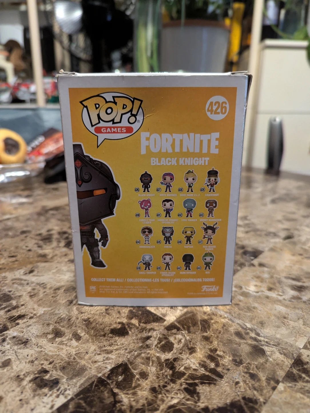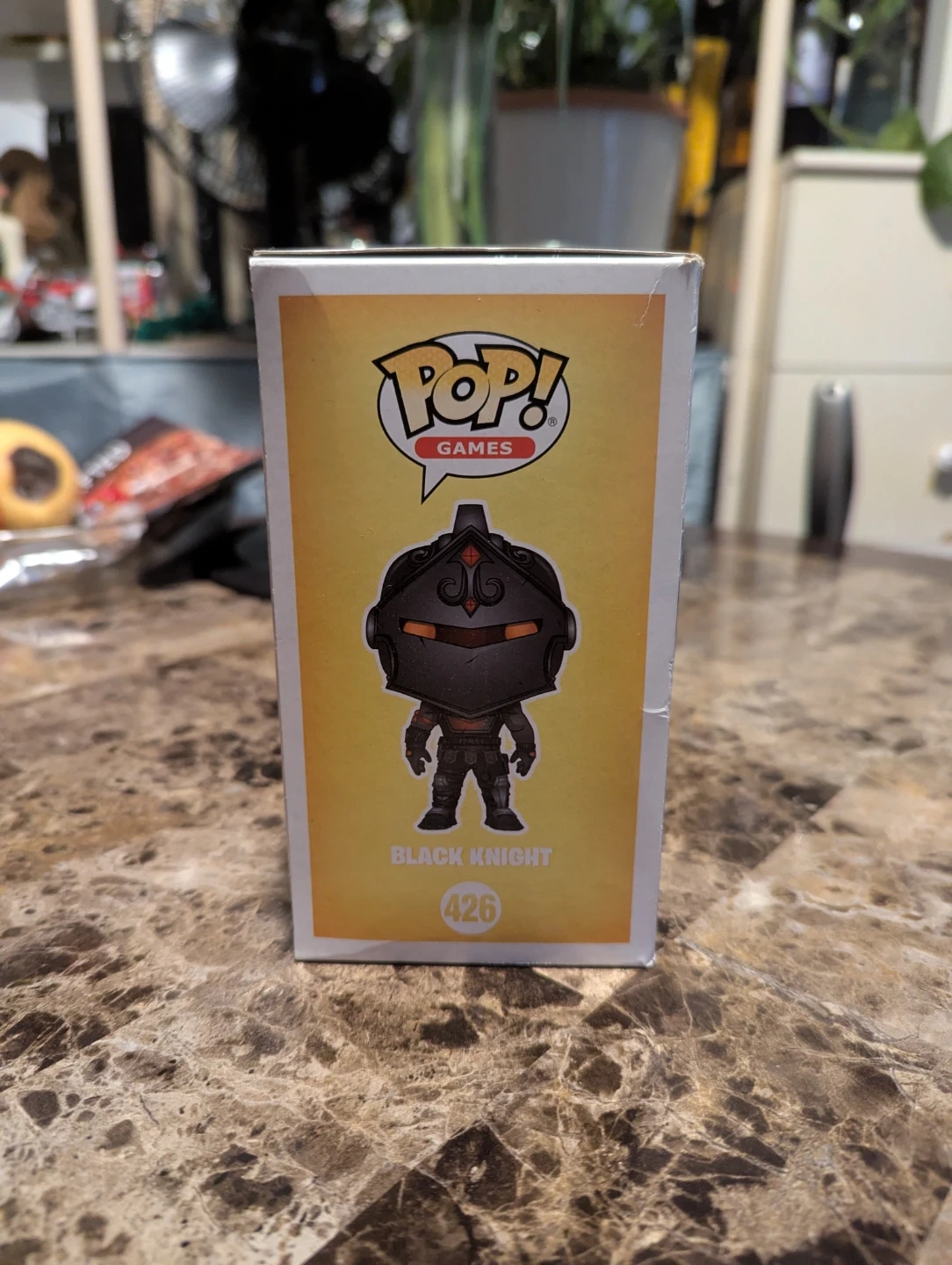 This is a Funko Pop! vinyl figure of the Black Knight from Fortnite, model #426. It's in the original box. Just a tiny scratch on the top of the box but in perfect condition.