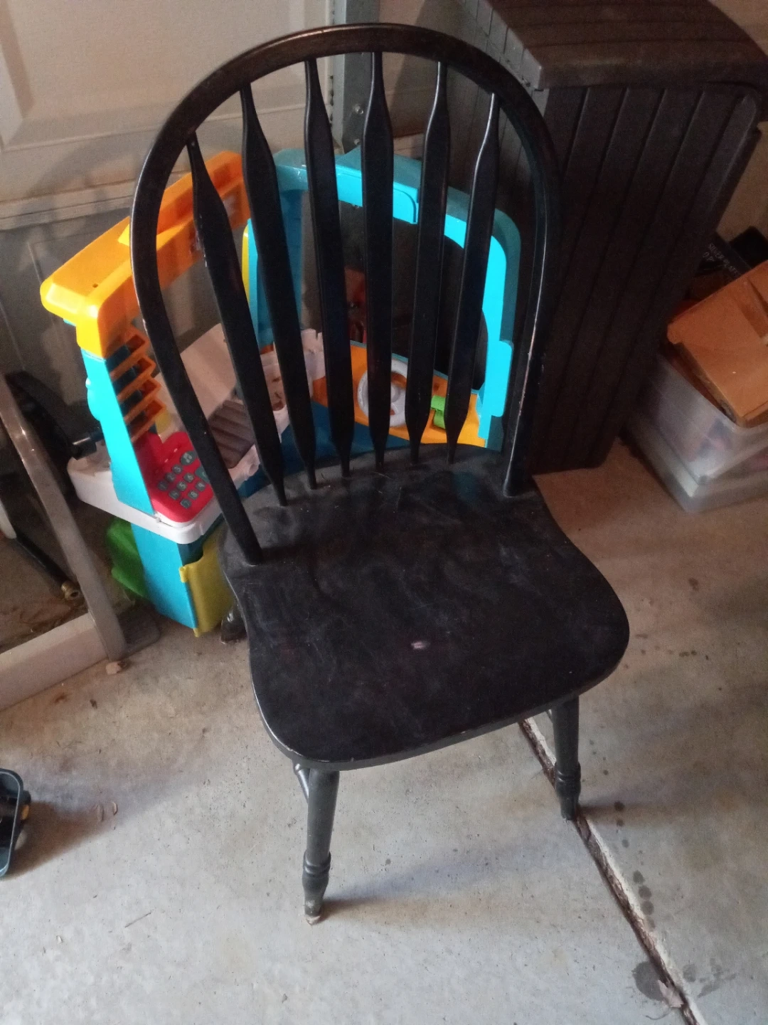 A classic black wooden chair with a spindle back design. It's a sturdy chair that can complement various decor styles. Suitable for dining or as an accent piece. Only one chair. From an animal and smoke free home. Cash only. Pickup in North Riverside 60546