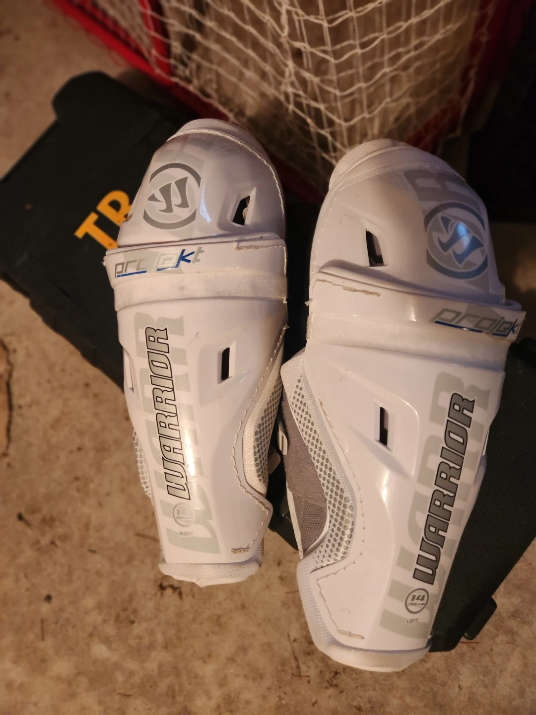 Selling a pair of Warrior Projekt hockey shin guards in great condition! They are size 14 inch (36cm). Perfect for protecting your shins during hockey games!