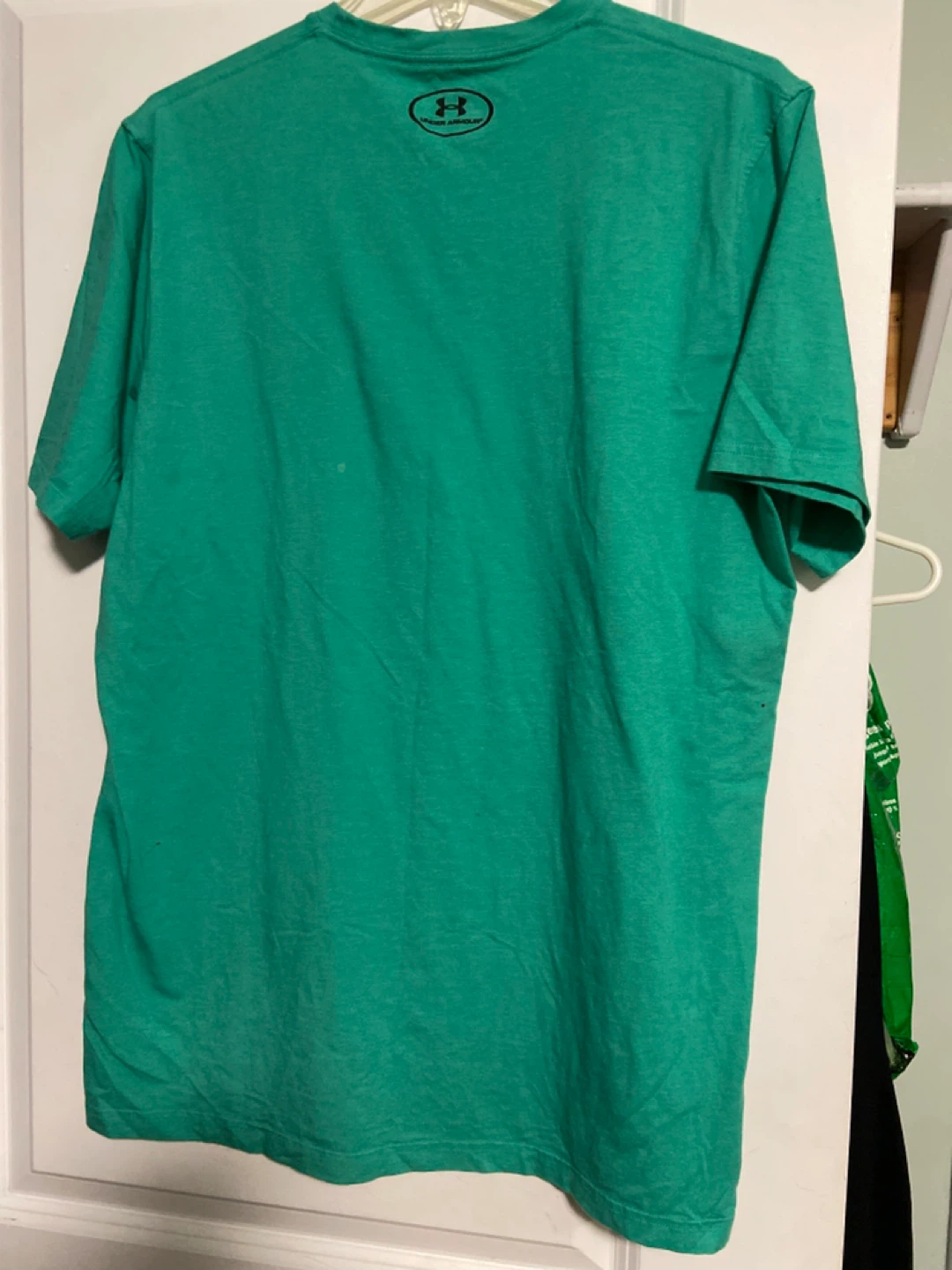 Selling a green Under Armour HeatGear T-shirt in size medium. It's in great condition and perfect for workouts or casual wear! The shirt features a loose fit and is made with HeatGear fabric to keep you cool and dry.