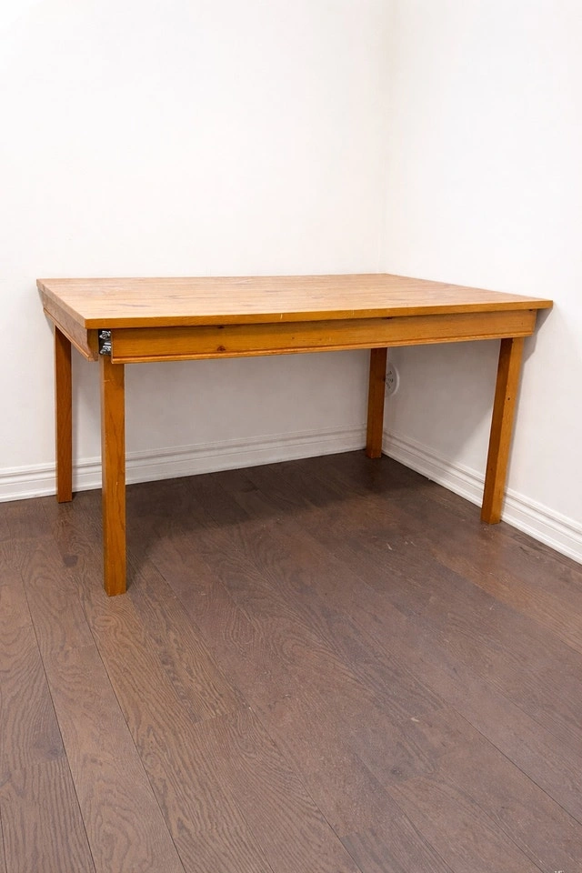 Clean and functional with a warm wood finish. Good for home office, study room, sewing/craft use, or extra workspace.