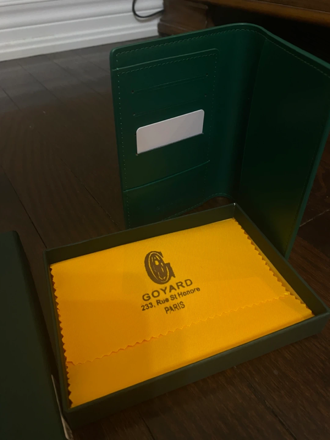 Buy & SellGoyard Green Passport Holder with BoxGoyard Green Passport Holder with Box$310Selling a Goyard Passport Holder in green. Comes with the original box and dust cloth!ConditionNewBrandGoyardWHERE TO MEETCheck LocationView MapSELLERColeRural Vaughan200 reviews1 chats·3 favorites·54 viewsSEND CHAT TO SELLERHi Cole! I’m interested in your listing.Hi Cole! I’m interested in your listing.Get the Karrot app to chatSign In to chat