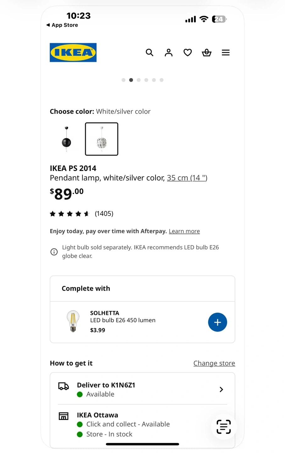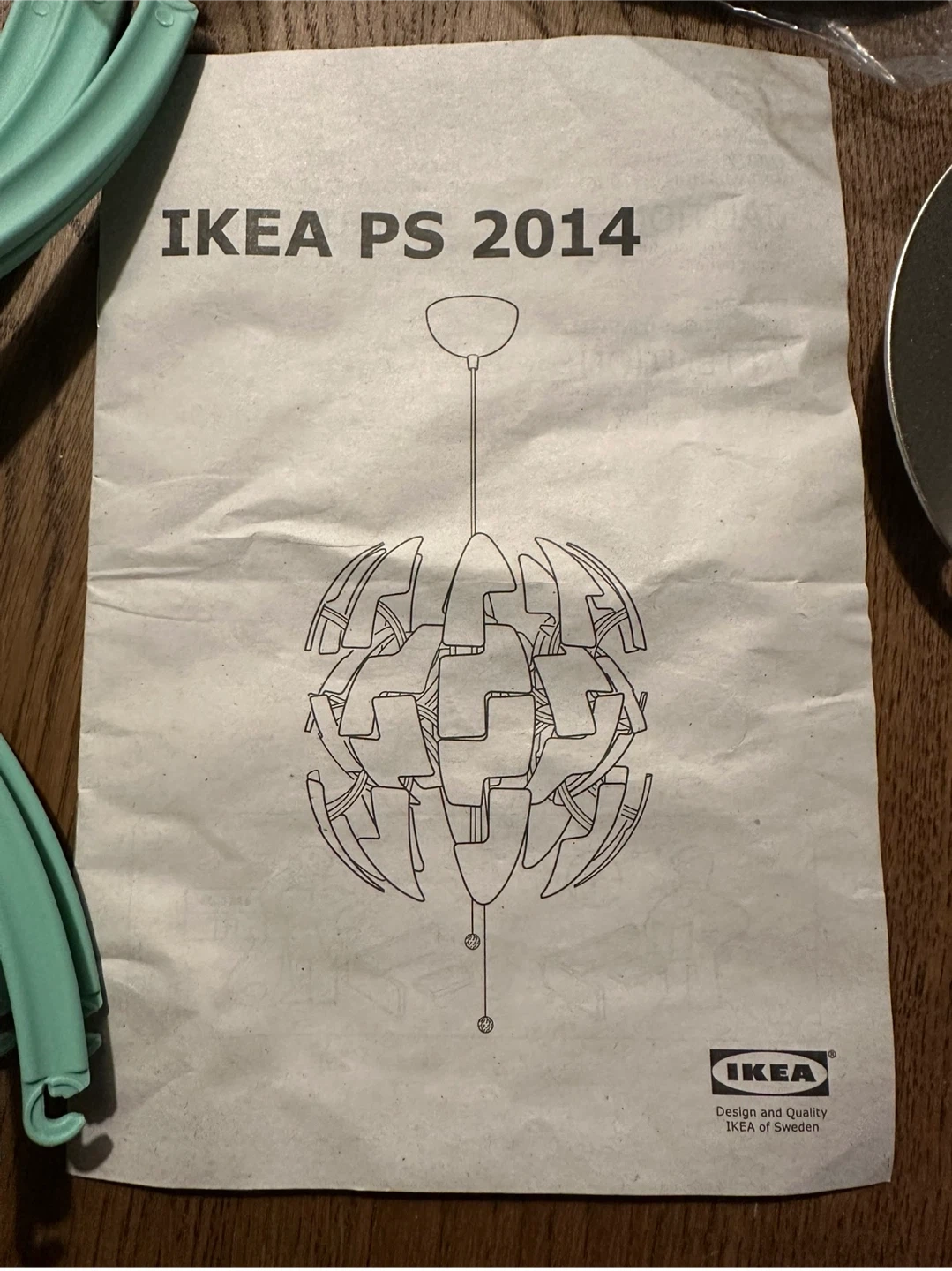 This is the IKEA PS 2014 pendant lamp, designed in white/silver colour. It's 35 cm (14") in diameter. All the parts for assembly are included in the package. You can easily change the colour if you choose.