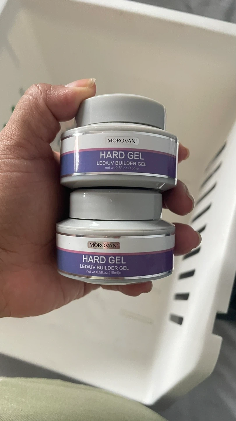 Selling MOROVAN Hard Gel LED/UV Builder Gel. Each container has 0.5 fl oz (15g) of product. Perfect for building and strengthening your nails!