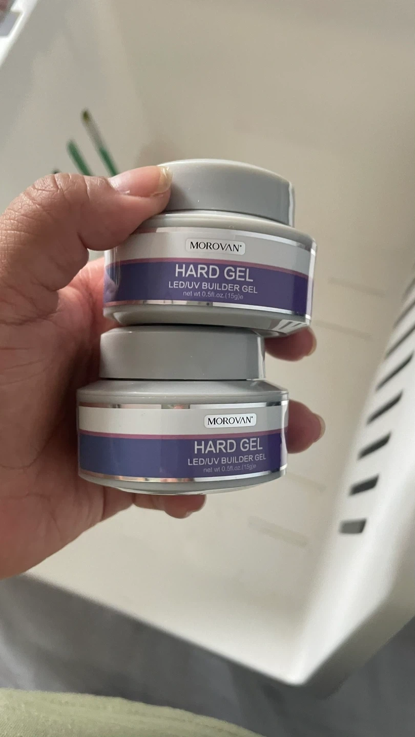 Selling MOROVAN Hard Gel LED/UV Builder Gel. Each container has 0.5 fl oz (15g) of product. Perfect for building and strengthening your nails!