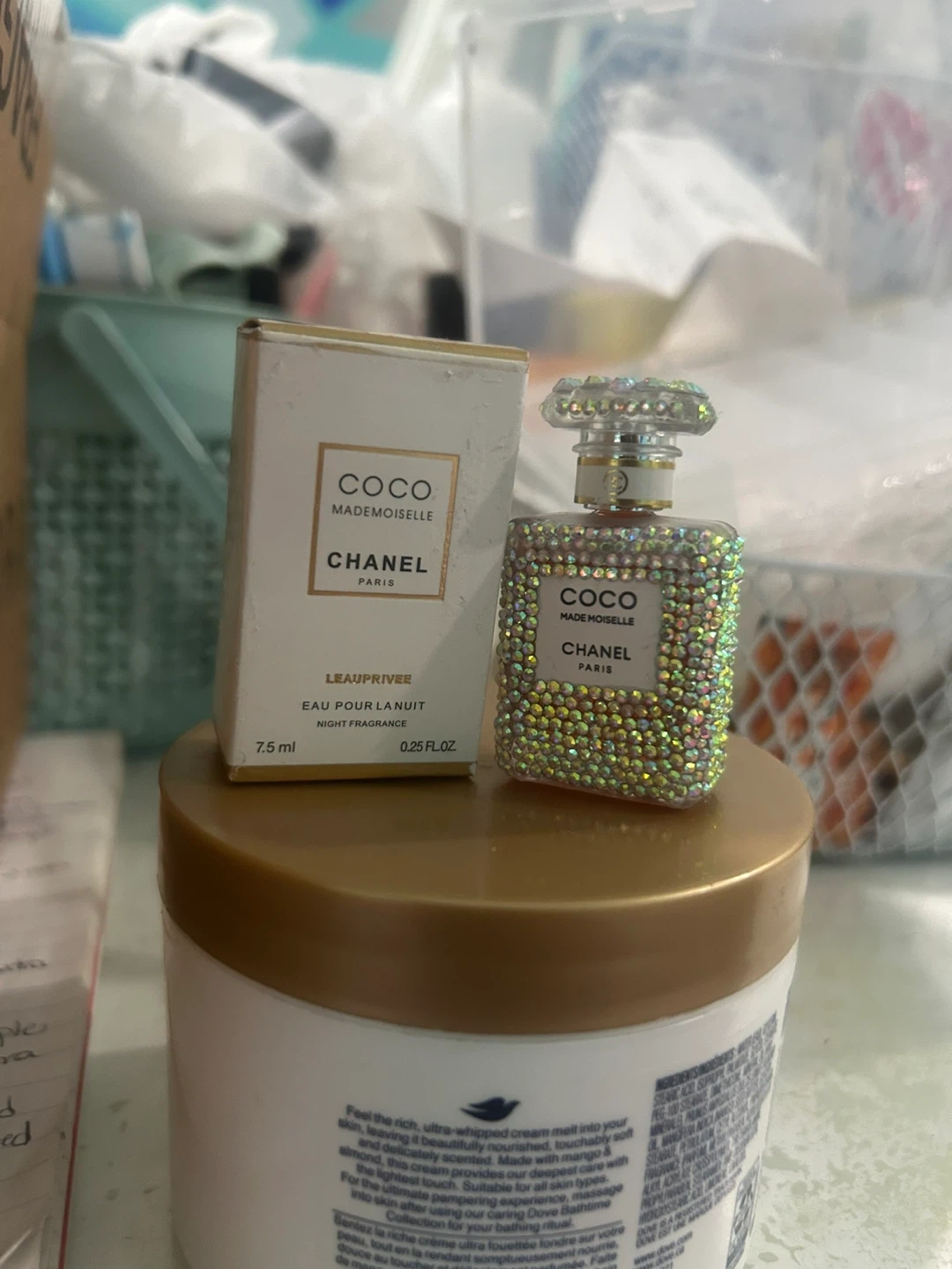 Chanel Coco Mademoiselle Eau Privée spray for the night. This collectible bottle is embellished with crystals. It's a 7.5ml size. Perfect for your scent collection!