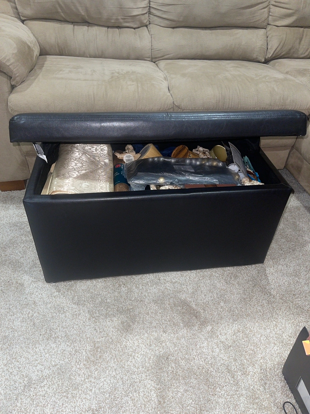 Selling a black storage ottoman. It’s in great shape and has plenty of room inside for storing blankets, pillows, or anything else you need to keep out of sight! Perfect for adding extra seating and storage to your living room or bedroom