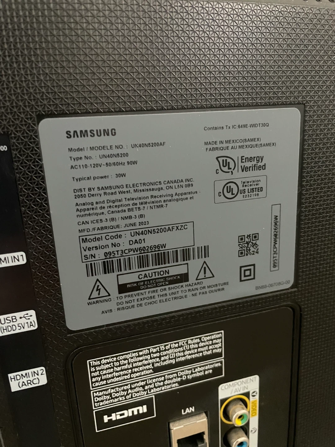 40" Samsung Full HD LED Smart TV (UN4ON5200AF). In Good Working Condition, With Remote & Original Box.