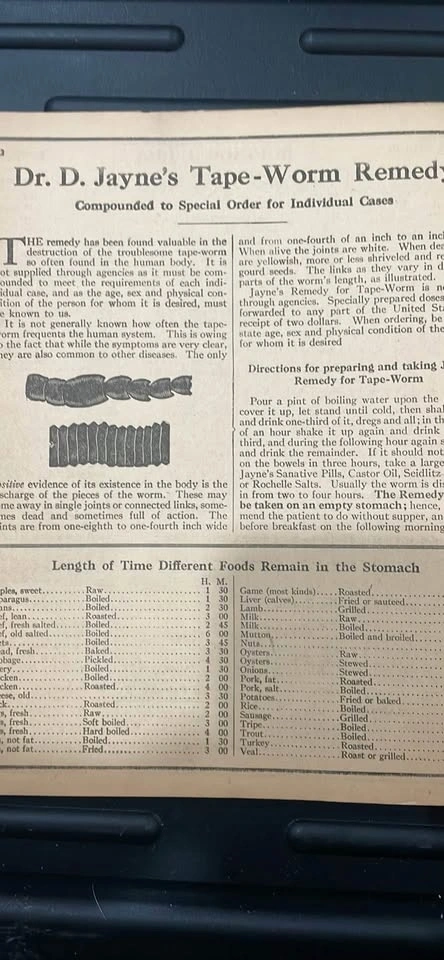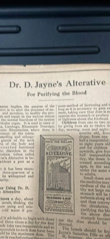 I have a Vintage 1916 Dr. D. Jayne’s Medical Almanac and Guide to Health from the middle of the 1st World War. There are some extremely interesting medical and pharmaceutical pieces within.