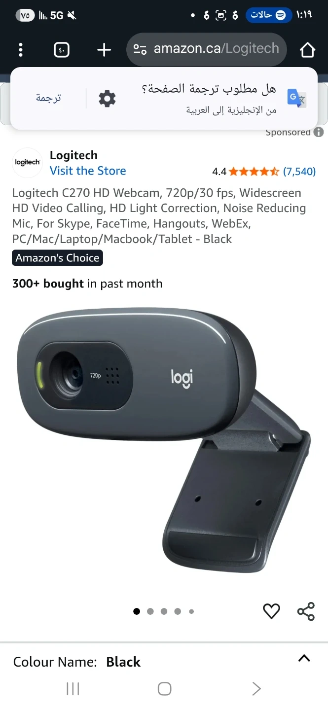 Logitech C270 HD Webcam - Black