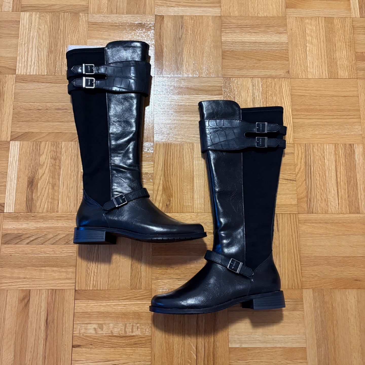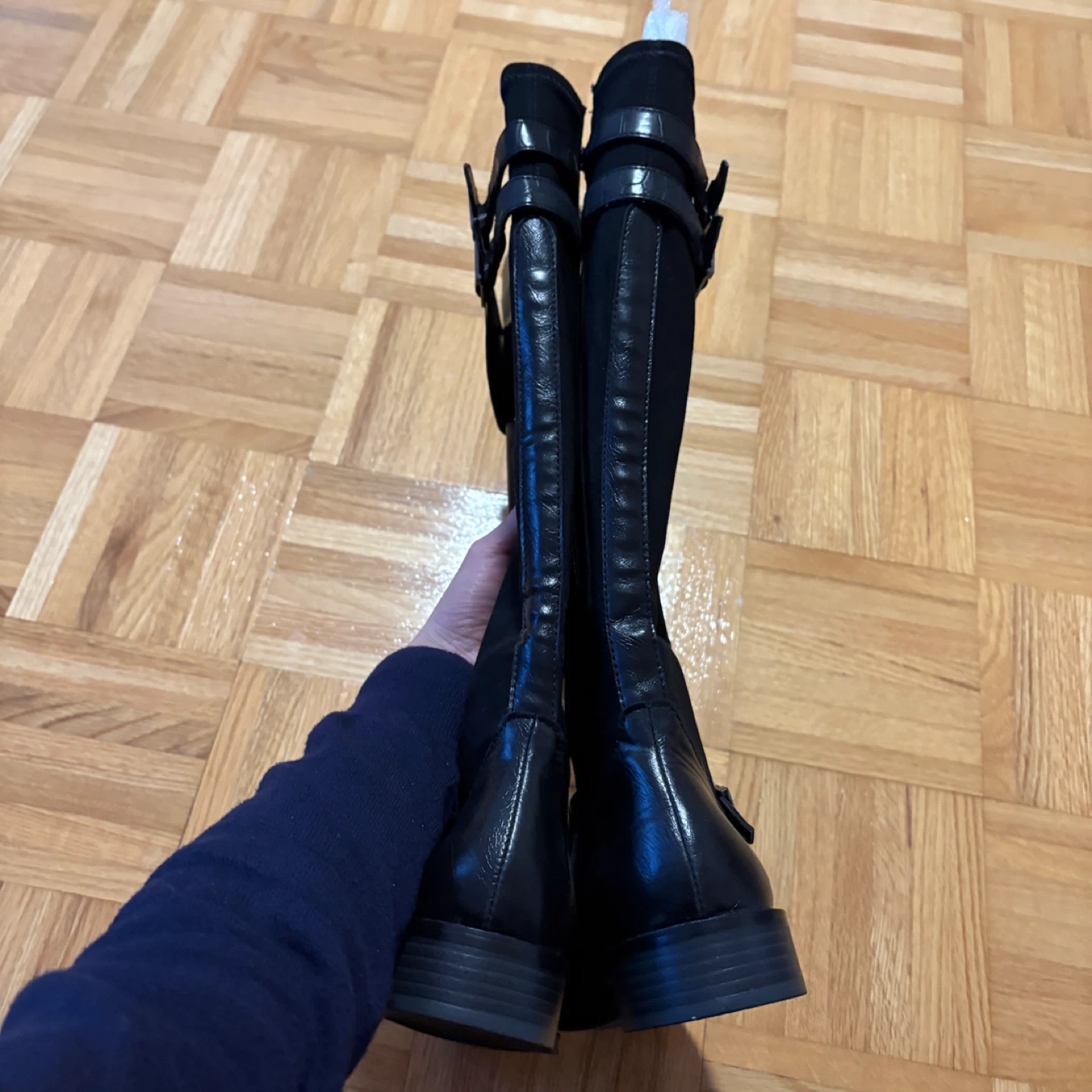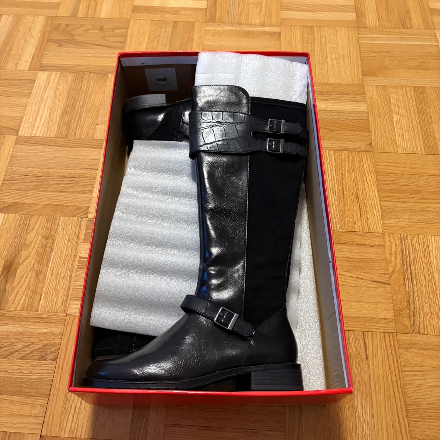 BNIB but has a defect in left boot as shown in last 3 photos - unfortunately I didn’t check properly when the boots when they arrived and was not aware there is a hole in the fabric area closest. Normally I would attempt to repair my clothing items/shoes but I already have a large pile of clothing items waiting for me to repair & own more than enough shoes. So if you are willing/know how to repair/sew this, get this boots at a discount, mend, rock them, and make me jealous!