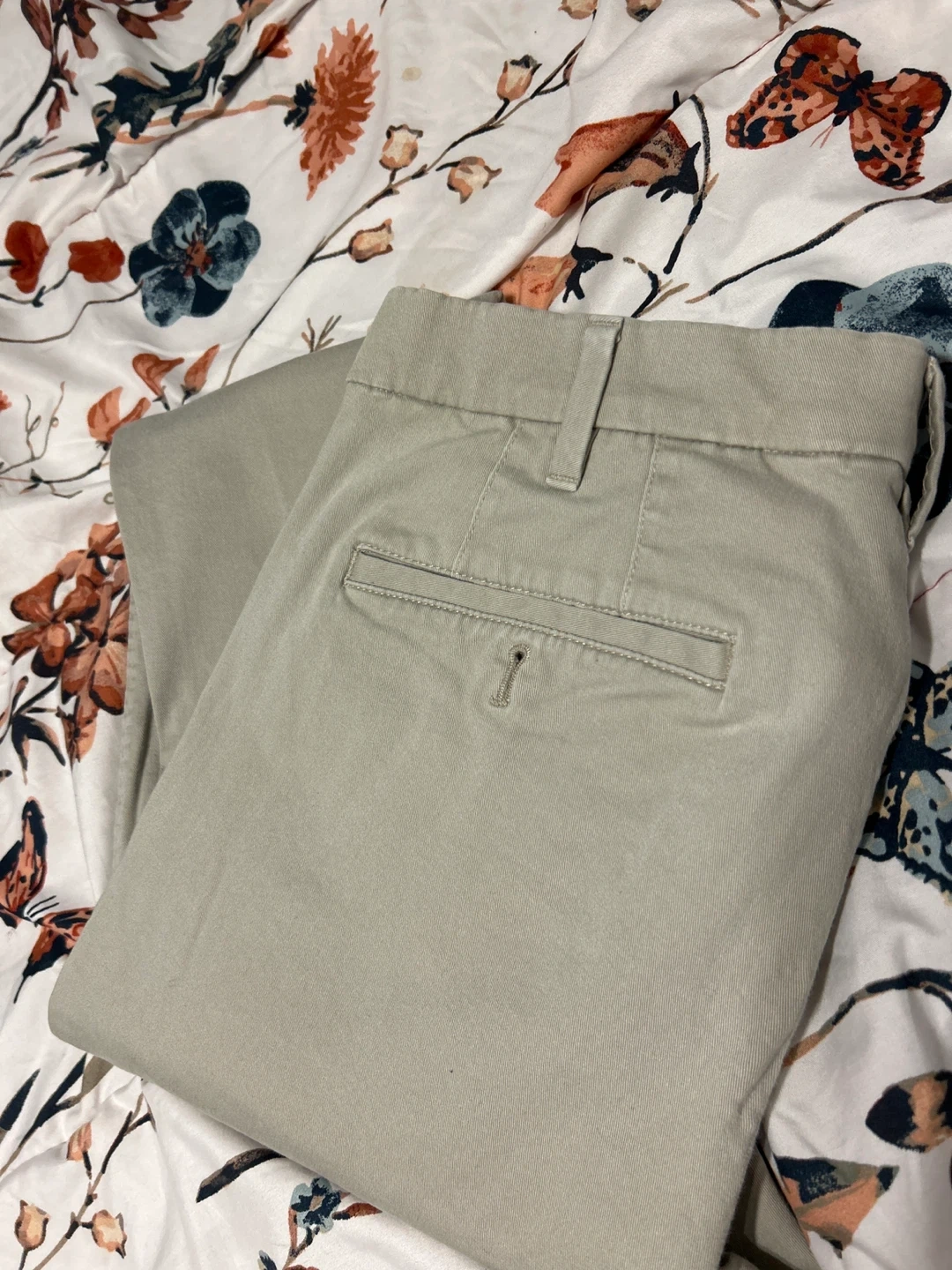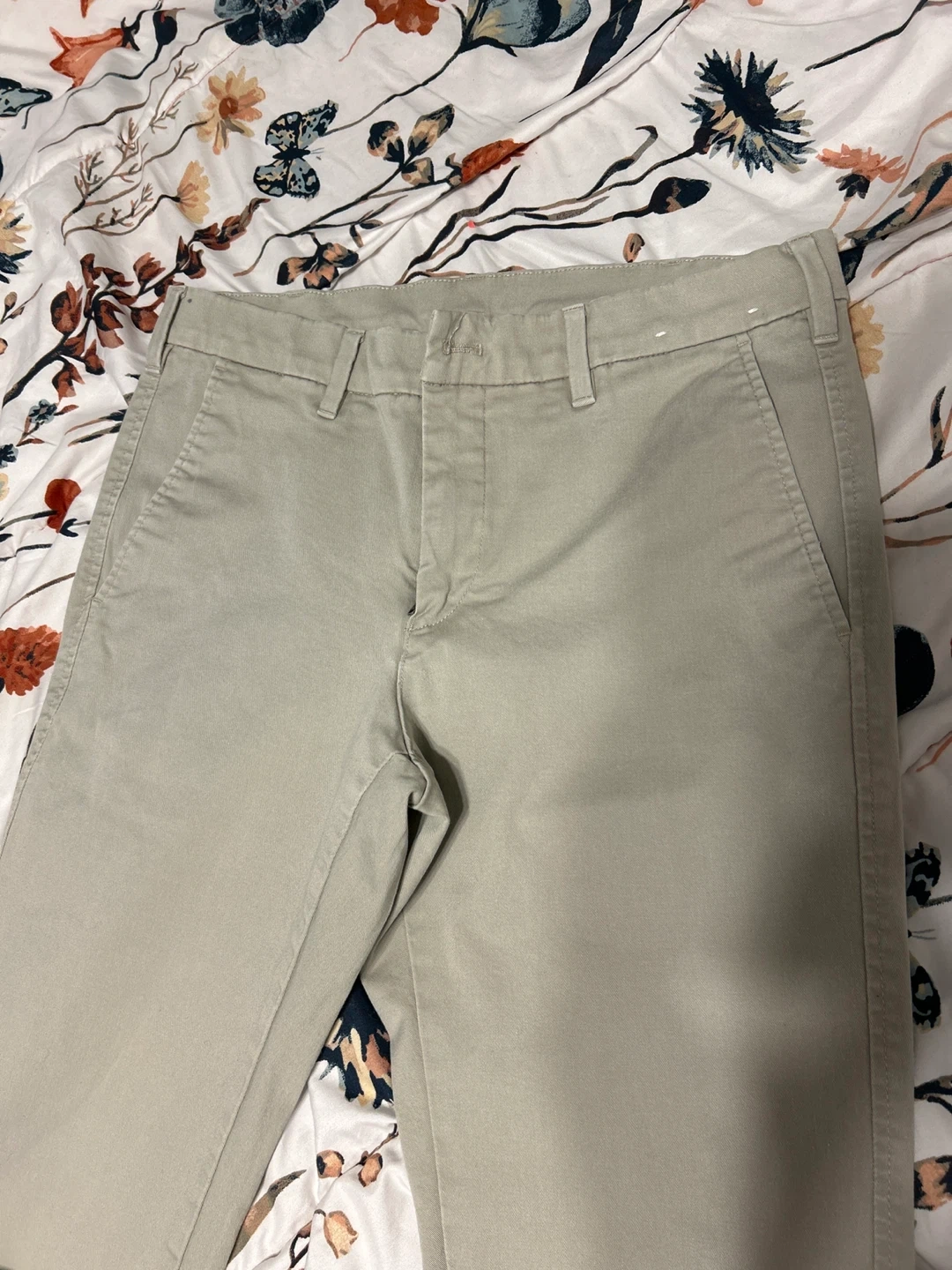Classic khaki chinos from UNIQLO. These pants are made with durable fabric and feature a comfortable fit. They're great for everyday wear or dressing up. Button and zip fly closure. Worn once!